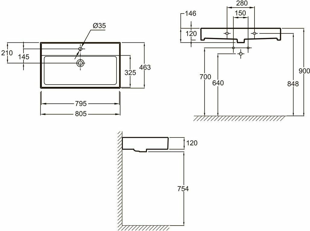 | Ширина/диаметр умывальника | 80.5 см |