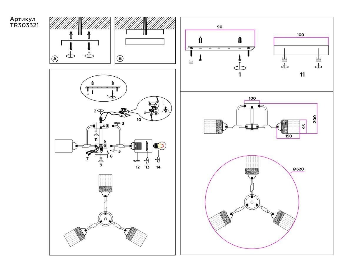 | Номенклатура | TR303321/3 WH/GD/CL/FR белый/золото/прозрачный/белый матовый E27*3 max 60W D620*210 |
