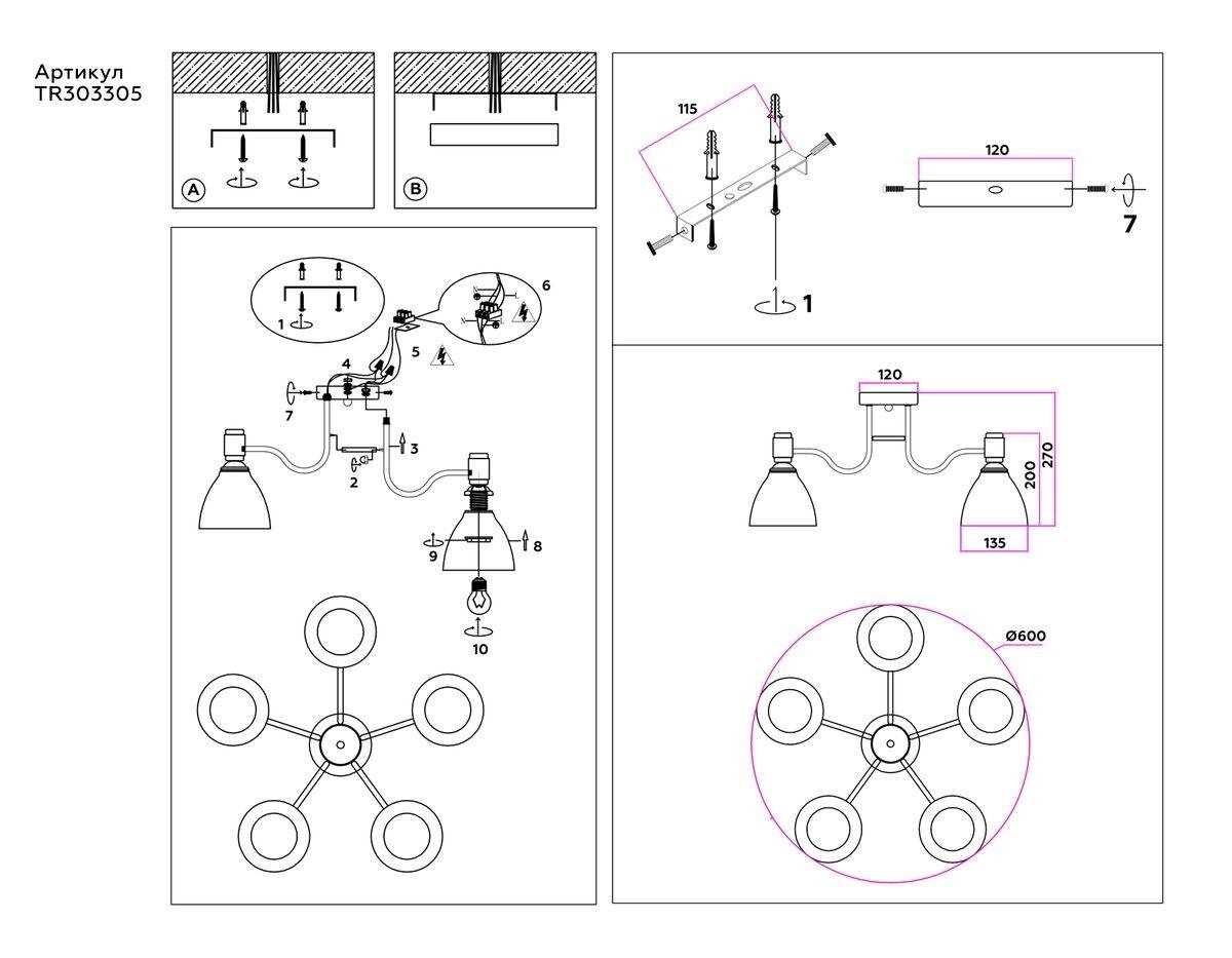 | Номенклатура | TR303305/5 WH/CH/FR белый/хром/белый матовый E27*5 max 60W D600*270 |