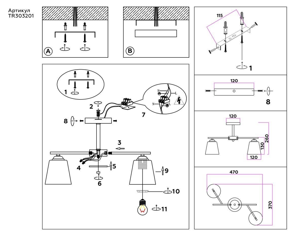 | Номенклатура | TR303201/2 WH/CH/FR белый/хром/белый матовый E27*2 max 60W 470*370*260 |