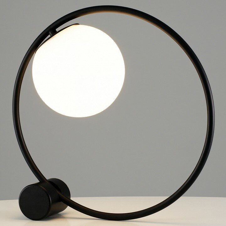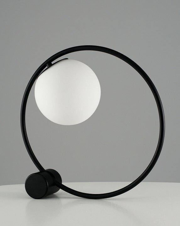 Лаконичная настольная лампа из серии Toledo. Плафон в виде шара из матового стекла мягко рассеивает свет для создания комфортного освещения. В качестве источника света подойдут дампы с цоколем Е27. Металлический каркас и основание черного цвета дополняют плафон повторяя плавные контуры. Минималистичный дизайн настольный лампы поможет украсить интерьер спальни, гостиной или зала.
