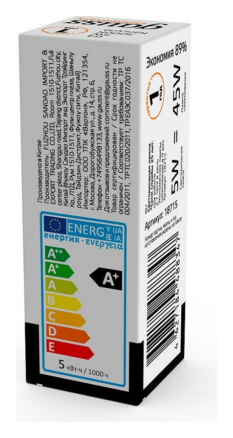 | Соответствие лампы накаливания, Вт | 45 |