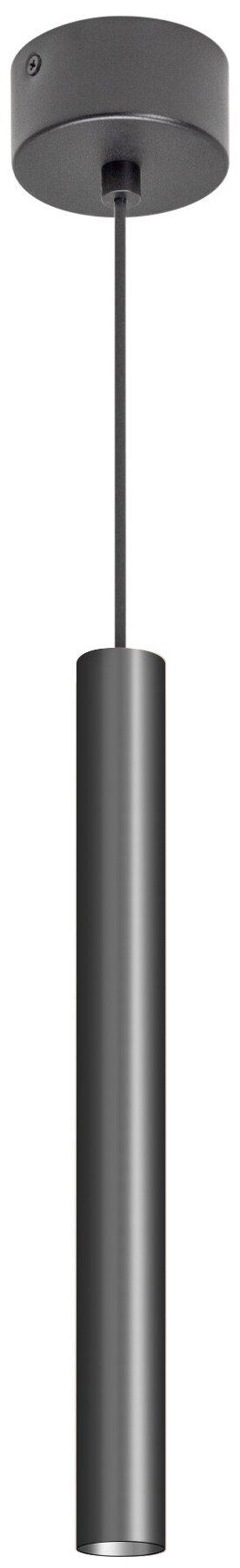 Подвесной светильник. Мощность 9 Вт, св. поток 561 лм, 64 лм/Вт, теплый 3000 K, CRI>90, угол 24°, напряжение питания 230 В. Черный круглый корпус из алюминия, рассеиватель PC, степень защиты IP20. Размер: диаметр 30 мм, длина 300 мм, размер чаши: диаметр 80 мм, высота 40 мм. Монтаж подвесной, длина подвеса 1500 мм. Драйвер 28-42 В, 200 мА, пульсация