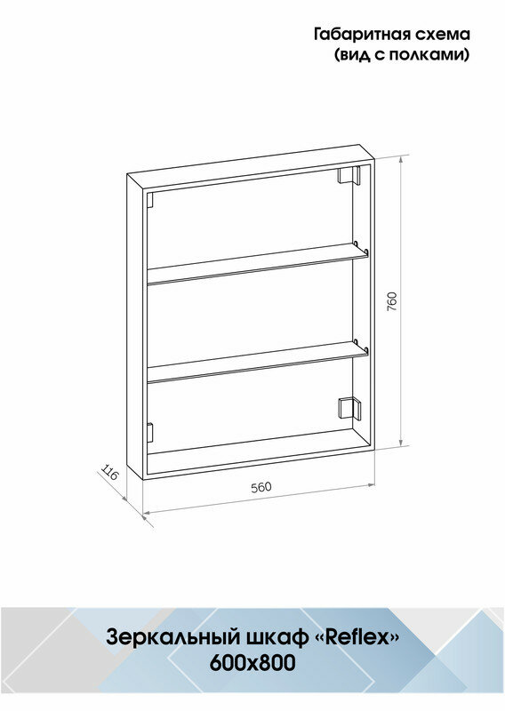 Зеркало-шкаф "Reflex LED" 600х800 с LED-подвесной изготовлено из зеркального полотна толщиной 4 мм производства ведущего европейского производителя зеркал AGC, материал корпуса изготовлен из влагостойкого ЛДСП покрытого пленкой ПВХ. Дверцы шкафа оснащены фурнитурой с доводчиком для плавного закрытия дверцы.Модель отличается стильным минималистическим дизайном.В качестве элемента LED-подсветки используется светодиодная лента с плотностью диодов 120 шт.м мощностью 9,6Втм.Это создает мягкое и равномерное свечение по периметру всего зеркала.Электрические компоненты размещены внутри корпуса, край полотна обработан еврокромкой, что обеспечивает надежную защиту от случайных порезов при контакте с изделием.Управление подсветкой осуществляется при помощи сенсорной кнопки, вынесенной на лицевую панель для удобства настройки необходимой яркости.Зеркало поставляется в комплекте с настенным крепежом.Изделие прошло обязательную сертификацию и может использоваться в помещениях с повышенной влажностью воздуха.Срок гарантии - 2 года.