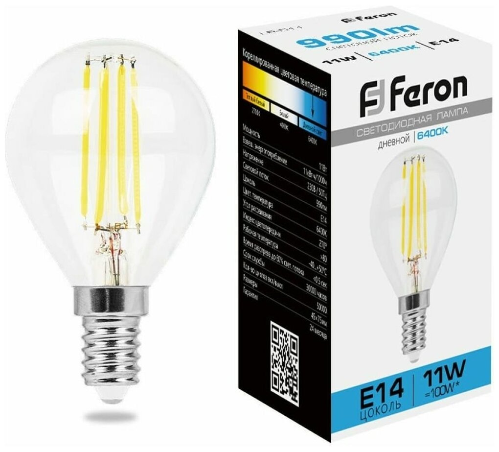 На сегодняшний день товар «Лампа светодиодная филаментная Feron E14 11W 6400K прозрачная LB-511 / 38225» можно купить с кешбеком в 1 магазине: Яндекс.Маркет