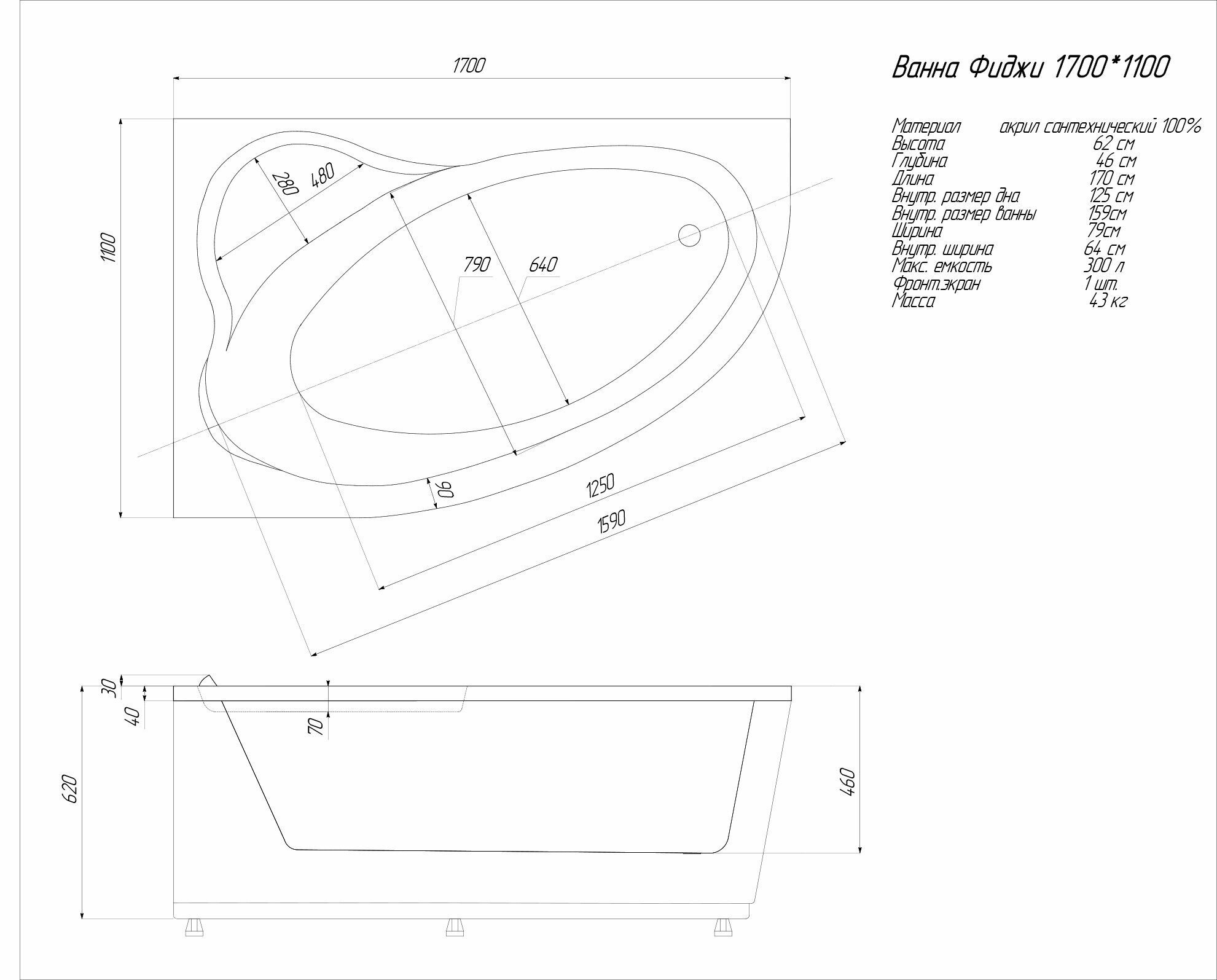 Материал: Изысканный акрил, обеспечивающий прочность и долговечность ванны, а также приятную на ощупь поверхность.
