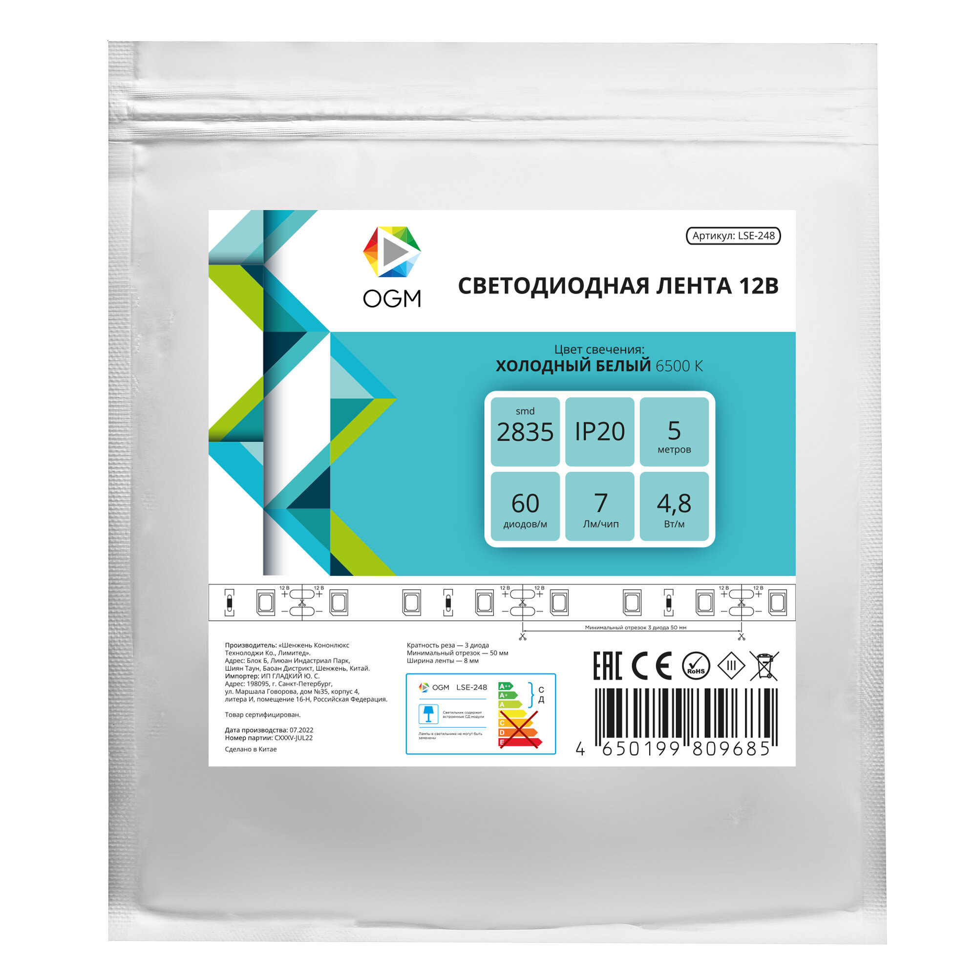Светодиодная лента OGM 48W/m 60LED/m 2835SMD холодный белый 5M LSE-248