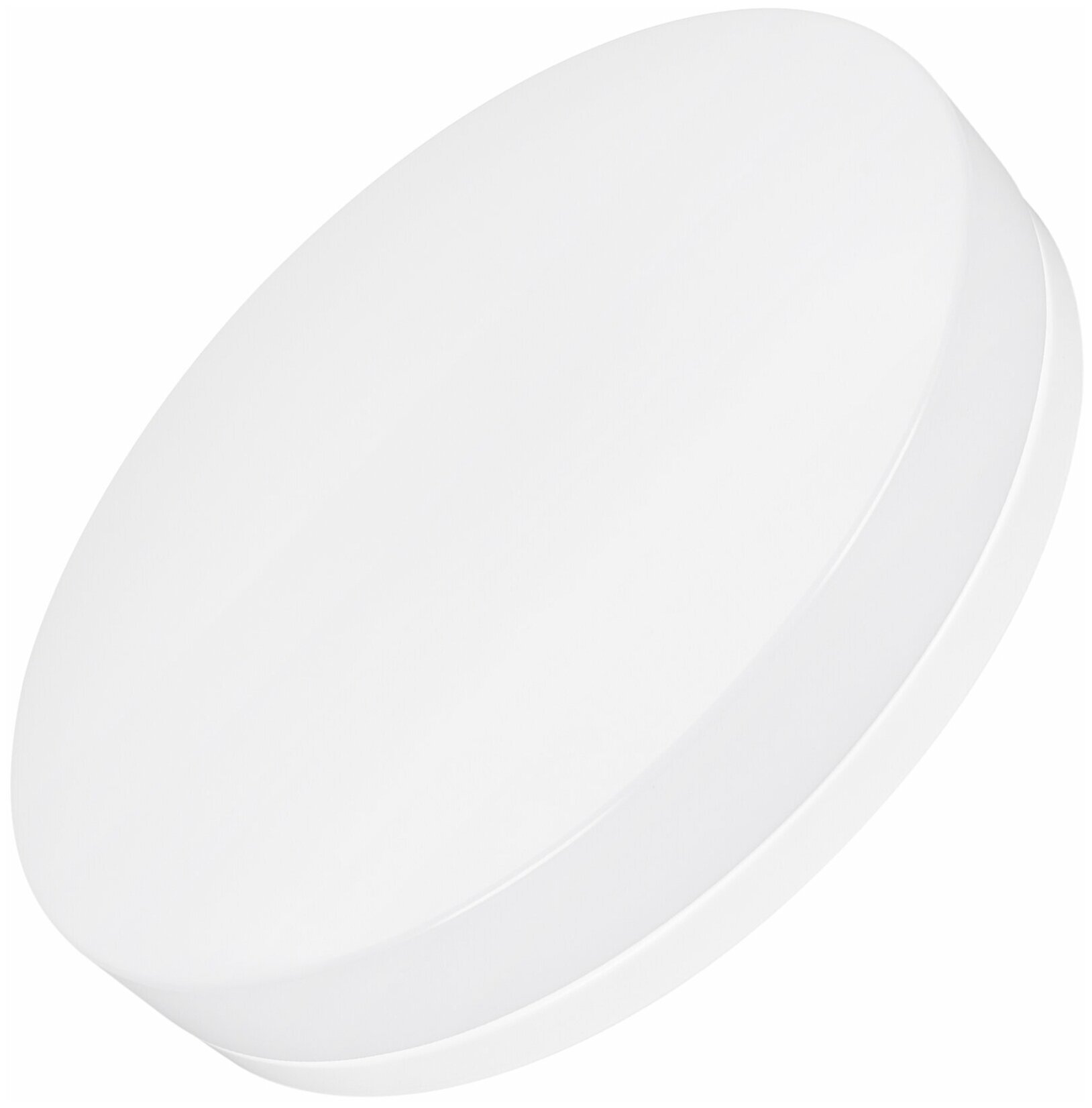 Накладной светильник с изменяемой цветовой температурой. Мощность 50 Вт, св. поток 4600-5100 лм, 100 лм/Вт, теплый 3000 K, дневной 4000K, белый 6000K, CRI>80, угол 140°, напряжение питания 230 В. Белый круглый корпус из металла, рассеиватель из поликарбоната, степень защиты IP40. Размер: диаметр 505 мм, высота 85 мм. Монтаж накладной, Драйвер встроенный, пульсация
