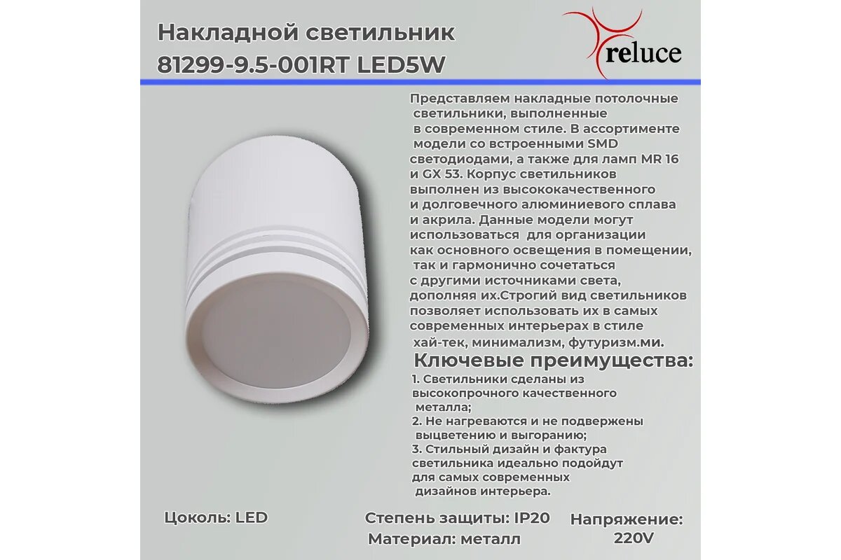 Сервис сравнения цен СкидкаГИД предлагает сравнить цены на товар «Накладной светильник Reluce 81299-9.5-001RT LED5W WT»
