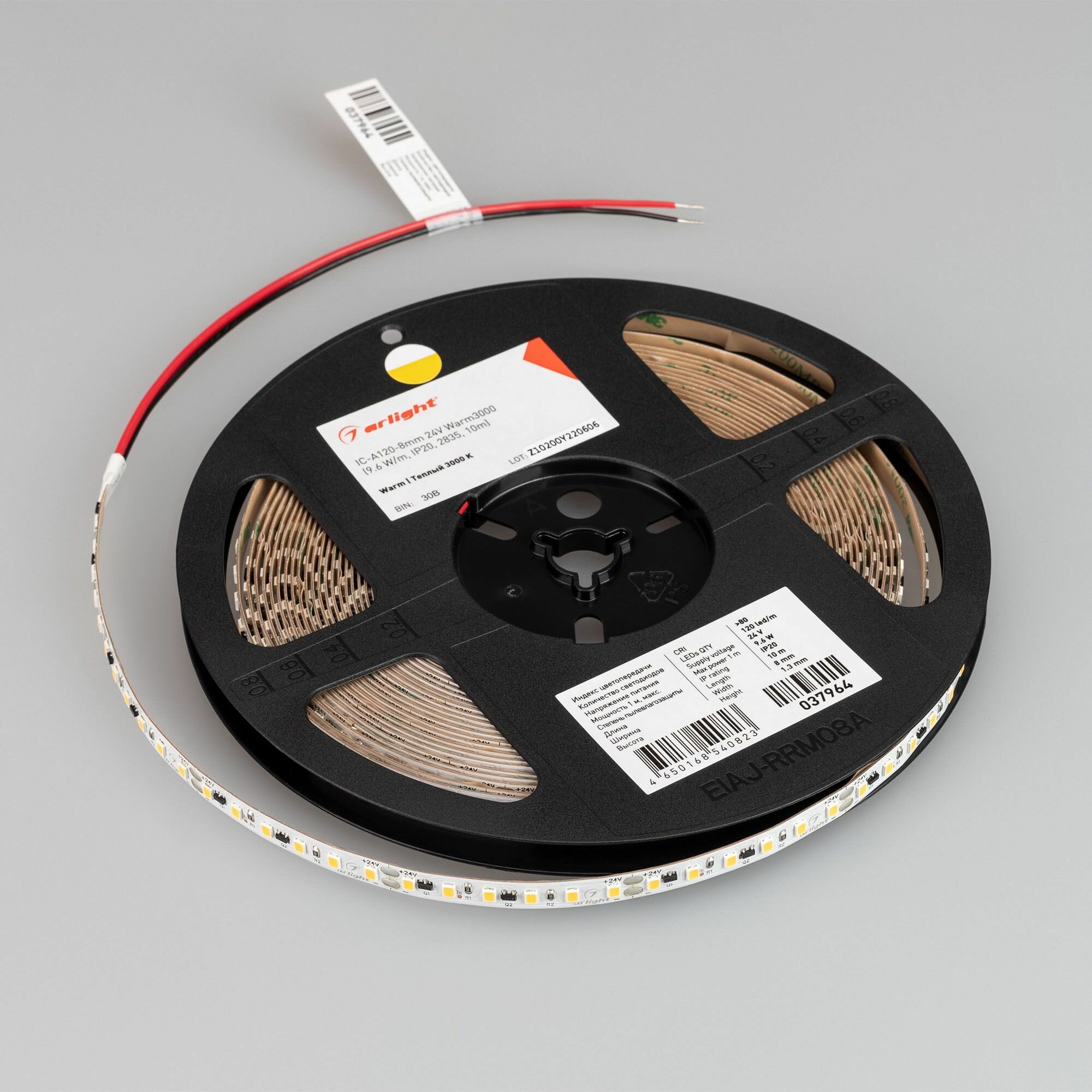 Светодиодная лента Arlight 96W/m 120LED/m 2835SMD теплый белый 10M IC-A120-8mm 24V Warm3000 / 037964