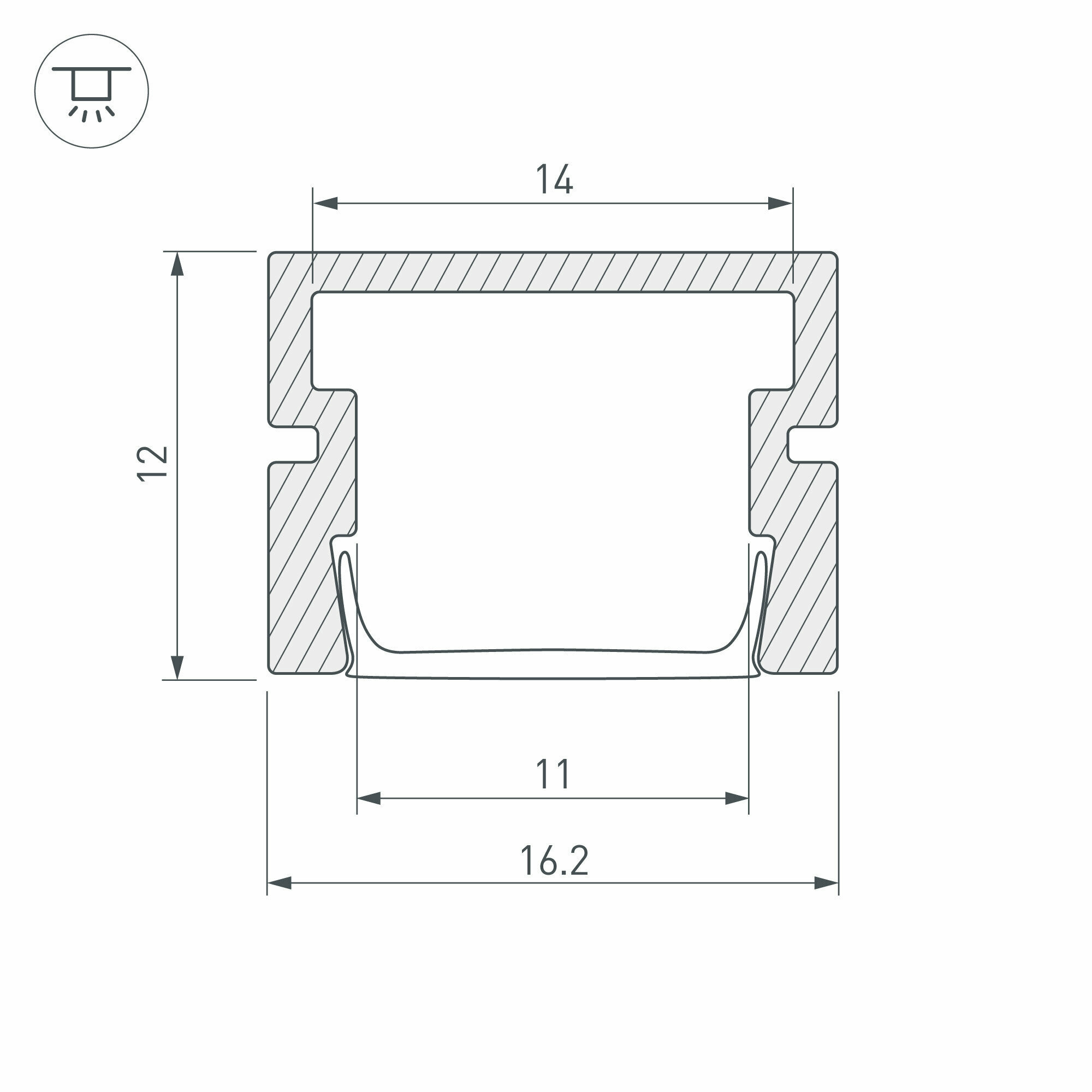 Алюминиевый анодированный профиль для светодиодных лент и линеек. Габаритные размеры (L×W×H): 3000x16,2x12 мм. Ширина площадки для ленты 14 мм. Экраны, заглушки и другие аксессуары приобретаются отдельно. Цена за 1 метр.