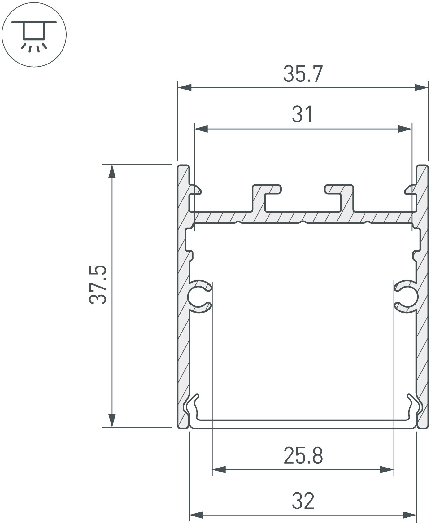 - Габариты (ШxВxД): 35,7 x 37,5 x 2000 мм.