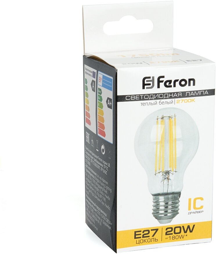 На сегодняшний день товар «Лампа светодиодная филаментная Feron E27 20W 2700K прозрачная LB-620 / 38245» можно купить с кешбеком в 1 магазине: Яндекс.Маркет