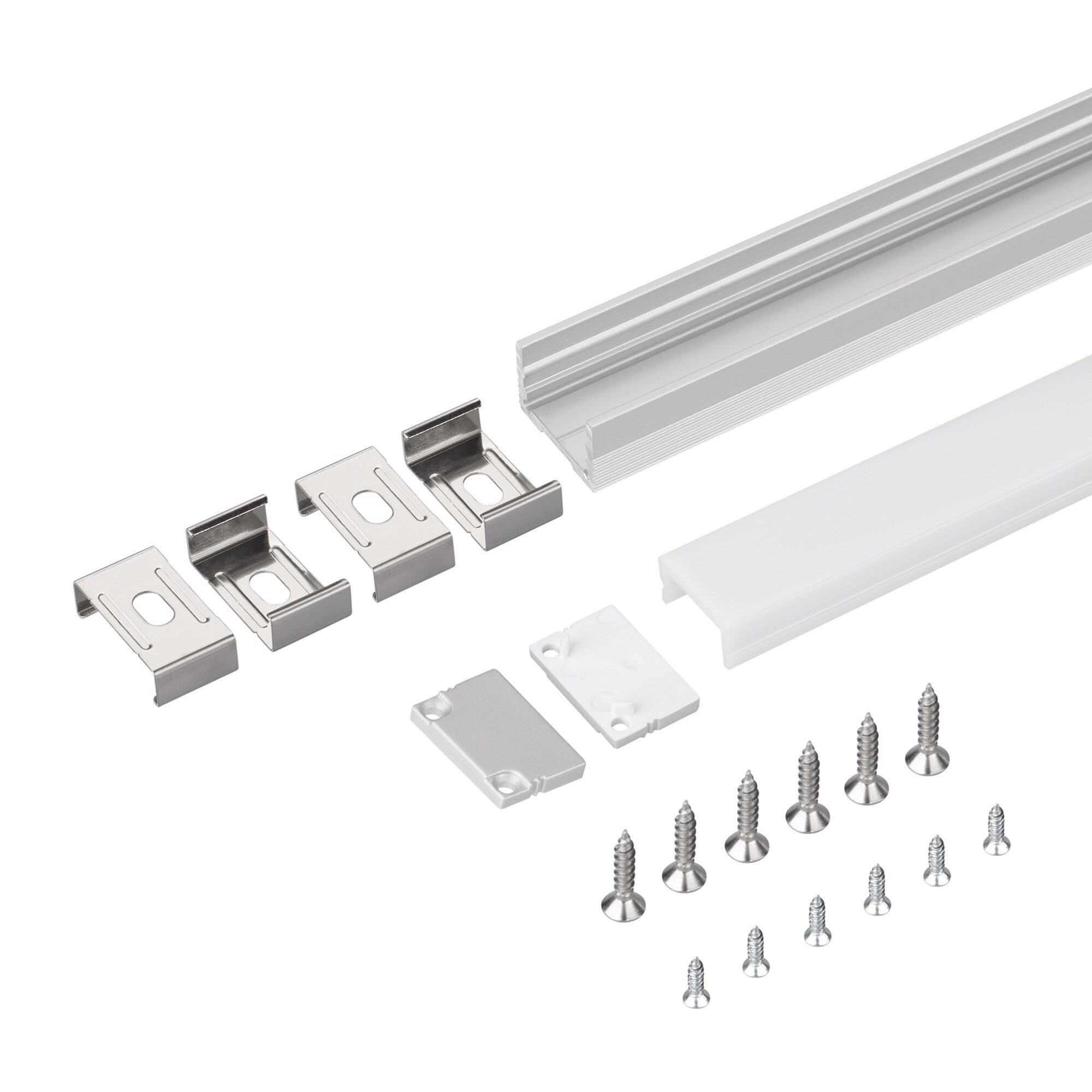 Комплект с экраном, в картонной коробке. Алюминиевый анодированный профиль для светодиодных лент и линеек. Габаритные размеры (L×W×H): 2000x20x13 мм. Ширина площадки для ленты 15 мм. В комплекте с матовым экраном, 2 заглушками и 4 держателями. Цена за комплект.