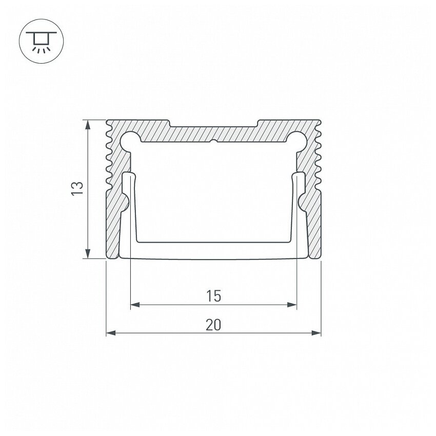 Накладной профиль из анодированного алюминия в комплекте с матовым экраном со светопропусканием 57%, заглушками и держателями для декоративного освещения интерьера. Габаритные размеры профиля составляют 2000 мм в длину, 20 мм в ширину и 13 мм в высоту. Площадка для установки светодиодных лент позволяет использовать ленту шириной до 15 мм и мощностью до 17 Вт/м. Это обеспечивает гибкость в выборе светодиодных лент и создает потрясающие световые решения. Отличное решение для создания современных световых проектов.