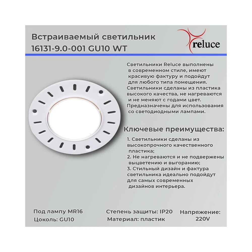 Сервис сравнения цен СкидкаГИД предлагает сравнить цены на товар «Точечный светильник Reluce 16131-9.0-001 GU10 WT»