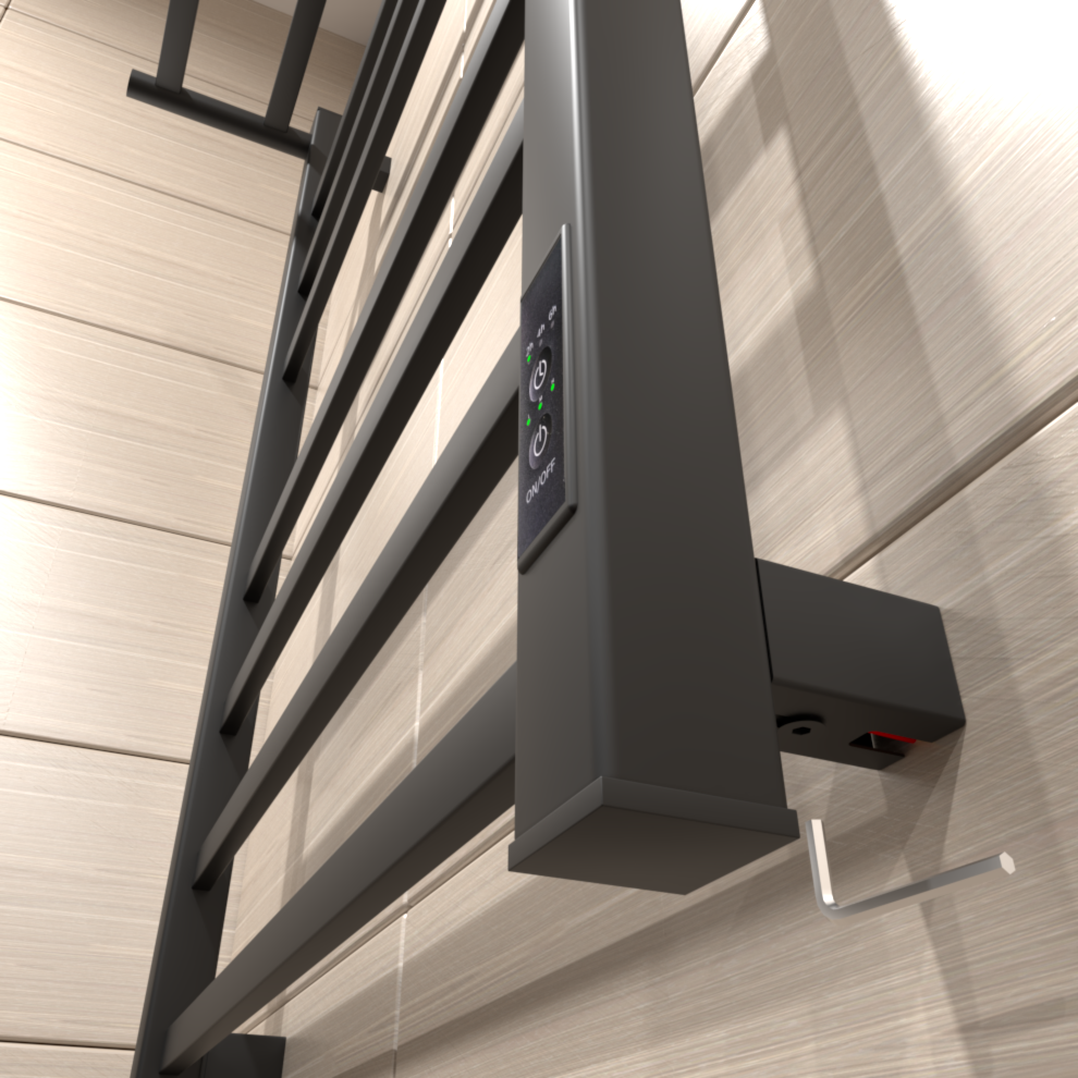 Встроенная функция регулировки температуры: 40 / 50 / 60 градусов Экономичность: Полотенцесушитель снабжен панелью управления. Кнопка включения/выключения и таймер на 2 / 4 / 6 часов , который позволяет включать изделие на ограниченное время. Эта функция дает возможность экономить электричество.Удобство монтажа: Полотенцесушитель крепится к стене на четыре держателя.Скрытое подключение: Благодаря приваренным в нижней части вертикальных труб в которых соединяется электропроводка, возможно скрытое подключение к электричеству справа.Подключение в розетку: В комплекте также имеется шнур с вилкой, который будет необходим при подключении к розетке.Панель включения:режим №1 — работа в течение 2 часов с последующим отключением.режим №2 — работа в течение 4 часов с последующим отключением.режим №3 — работа в течение 6 часов с последующим отключением.Комплектация: Телескопическое крепление без кольца - 3 шт; Комплект скрытого монтажа - 1 шт; кабель с вилкой 220В - 1 шт