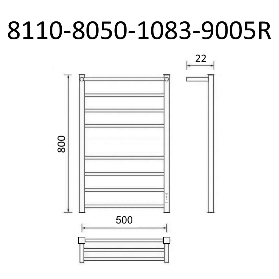 Полотенцесушитель электрический Маргроид Вид 81-10 профильный 80x50 R с полкой черный матовый 8110-8050-1083-9005R