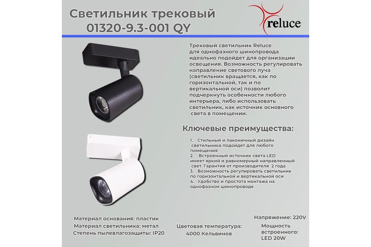 Сервис сравнения цен СкидкаГИД предлагает сравнить цены на товар «Трековый светильник Reluce 01320-9.3-001QY LED20W WT»