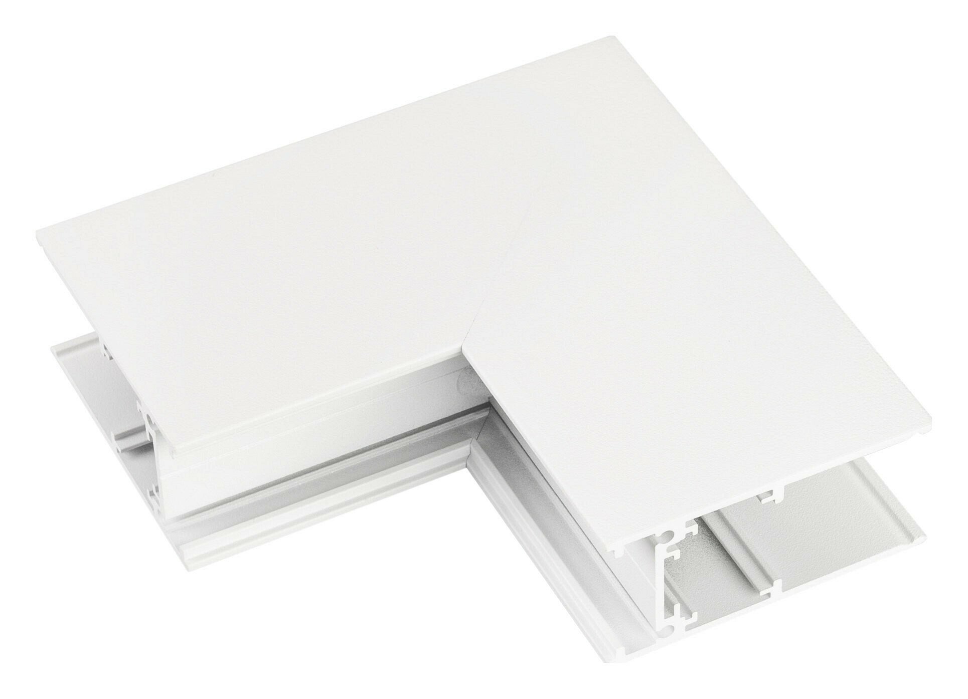 Угловой внешний коннектор для накладного трека MAG-TRACK-2652. DC48V. Материал алюминий, цвет белый. Размеры 100x100x25x62мм.