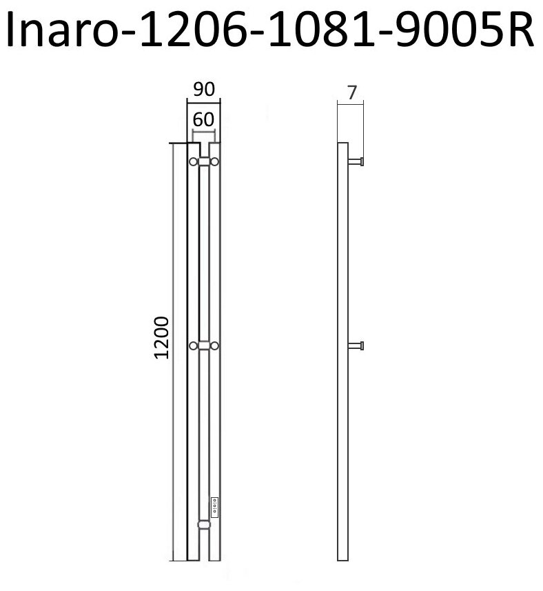 Полотенцесушитель электрический Маргроид Inaro профильный 120х6 R черный матовый Inaro-1206-1081-9005R