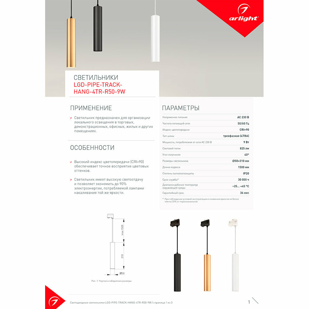 Сервис сравнения цен СкидкаГИД предлагает сравнить цены на товар «Трековый светодиодный светильник Arlight LGD-Pipe-Track-Hang-4TR-R50-9W Warm3000 / 037419»