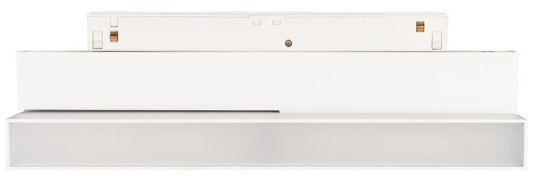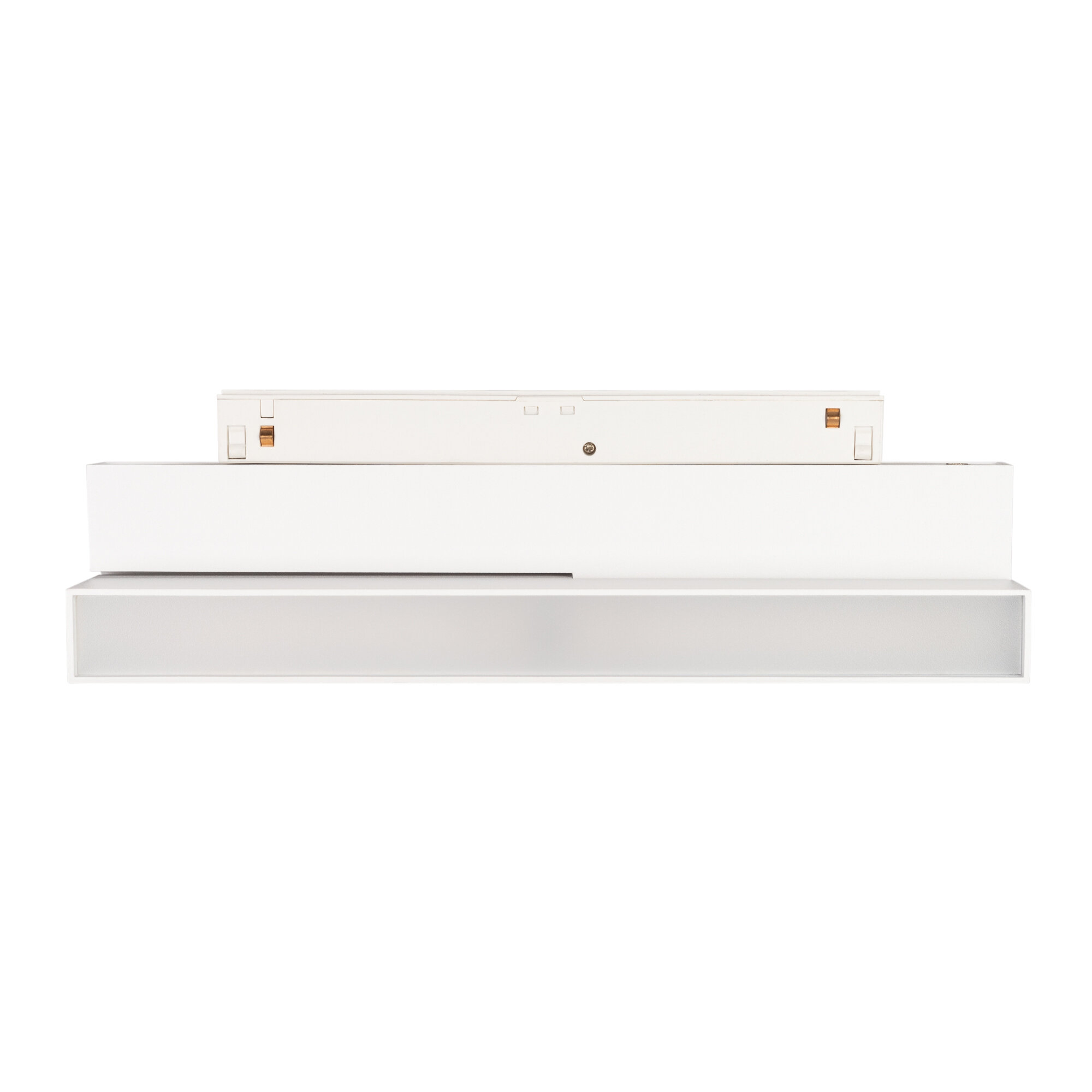 Светильник для магнитных треков MAG-ORIENT шириной 26 мм. Мощность 12 Вт, св. поток 760 лм, 64 лм/Вт, дневной 4000 K, CRI>90, угол 80°, напряжение питания 48 В. Белый прямоугольный корпус из металл, экран поликарбонат, степень защиты IP20. Размер: длина 231 мм, ширина 23 мм, высота 107 мм. Монтаж на трек MAG-ORIENT. Пульсация