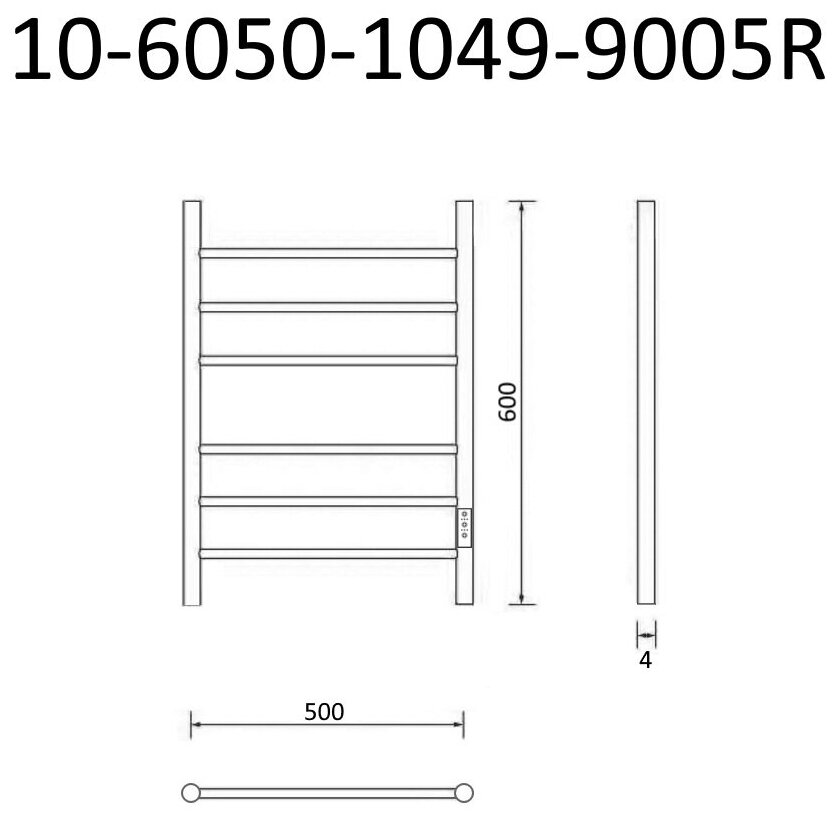 Полотенцесушитель электрический Маргроид Вид 10 СШН 60x50 R черный матовый 10-6050-1049-9005R