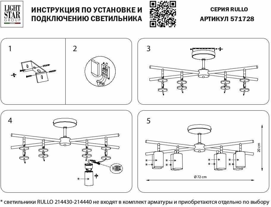 На сегодняшний день товар «Потолочная люстра Lightstar Rullo (571728+214437-4+214486-4) LR728374864» можно купить с кешбеком в 1 магазине: Santehnika-room
