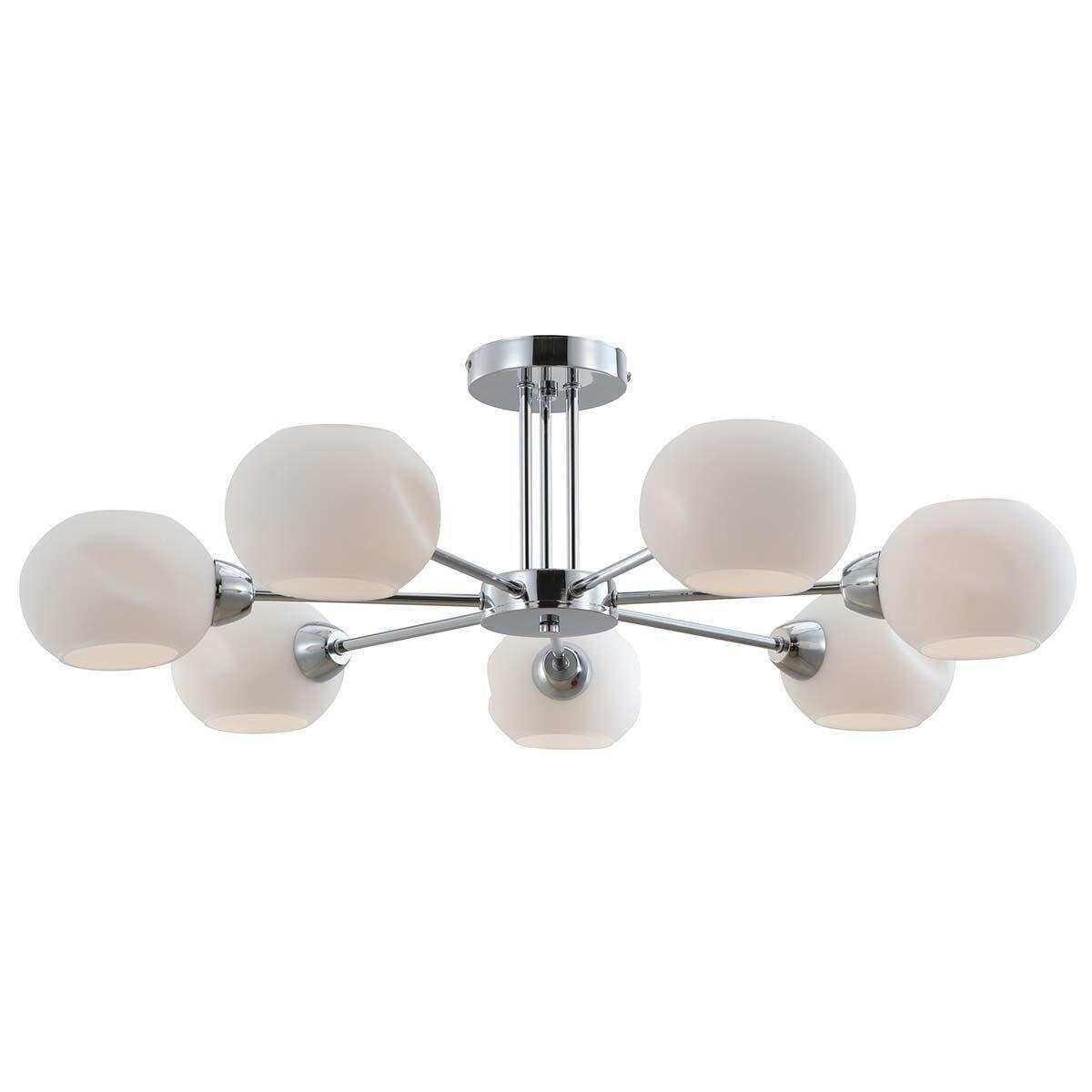 Люстра на штанге Rivoli Doris - это стильное и функциональное освещение для вашего дома. Произведенная в Италии, эта люстра сочетает в себе качество и элегантность, что делает ее отличным выбором для любого интерьера.Люстра имеет высоту 240 мм и ширину 750 мм, что позволяет ей гармонично вписаться в любой интерьер.В люстре используется 7 ламп мощностью 40 Вт каждая, что обеспечивает общую мощность освещения 280 Вт. Это позволяет осветить площадь до 21 м2, создавая уютную и комфортную атмосферу в вашем доме.Люстра выполнена из качественных материалов: металлическая арматура и стеклянные плафоны белого цвета. Цвет арматуры - хром, что придает ей современный и стильный вид.Люстра крепится на потолок с помощью штанги и планки, что обеспечивает надежное и прочное крепление. Управление осуществляется механическим способом.Люстра Rivoli Doris имеет степень пылевлагозащиты IP20, что гарантирует безопасность использования в домашних условиях.Выбирая люстру на штанге Rivoli Doris, вы получаете стильное и функциональное освещение для своего дома, которое прослужит вам долгие годы.