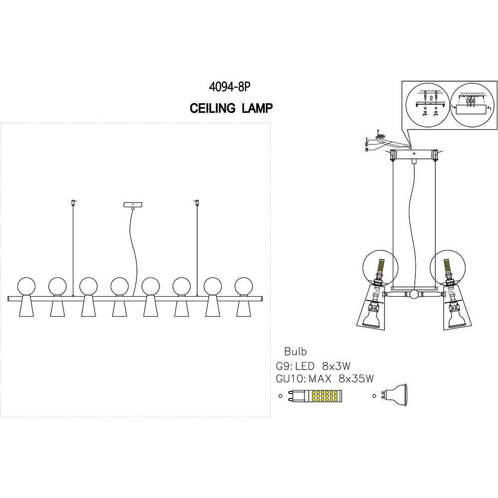| Общее количество ламп | 8 |