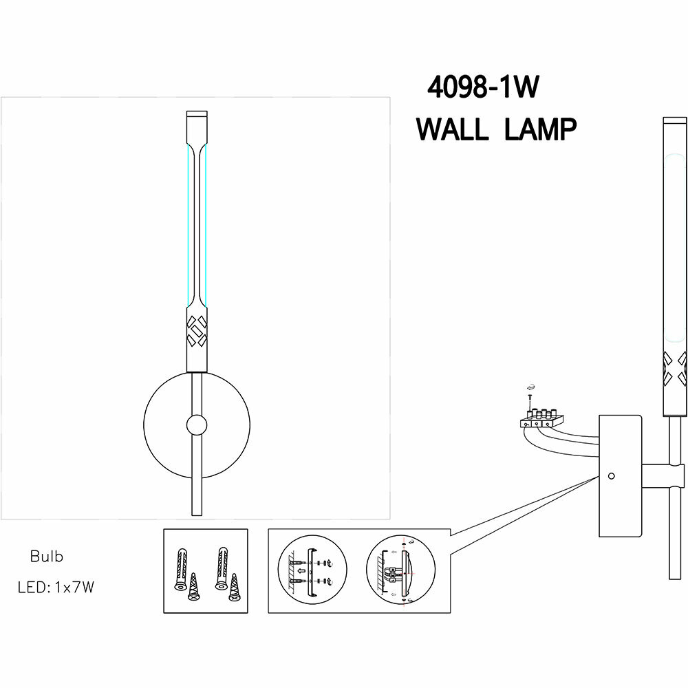 Бра оснащена лампами с цоколем LED максимальной мощностью 7 Вт. Это обеспечивает экономичное и яркое освещение, а также долгий срок службы ламп.