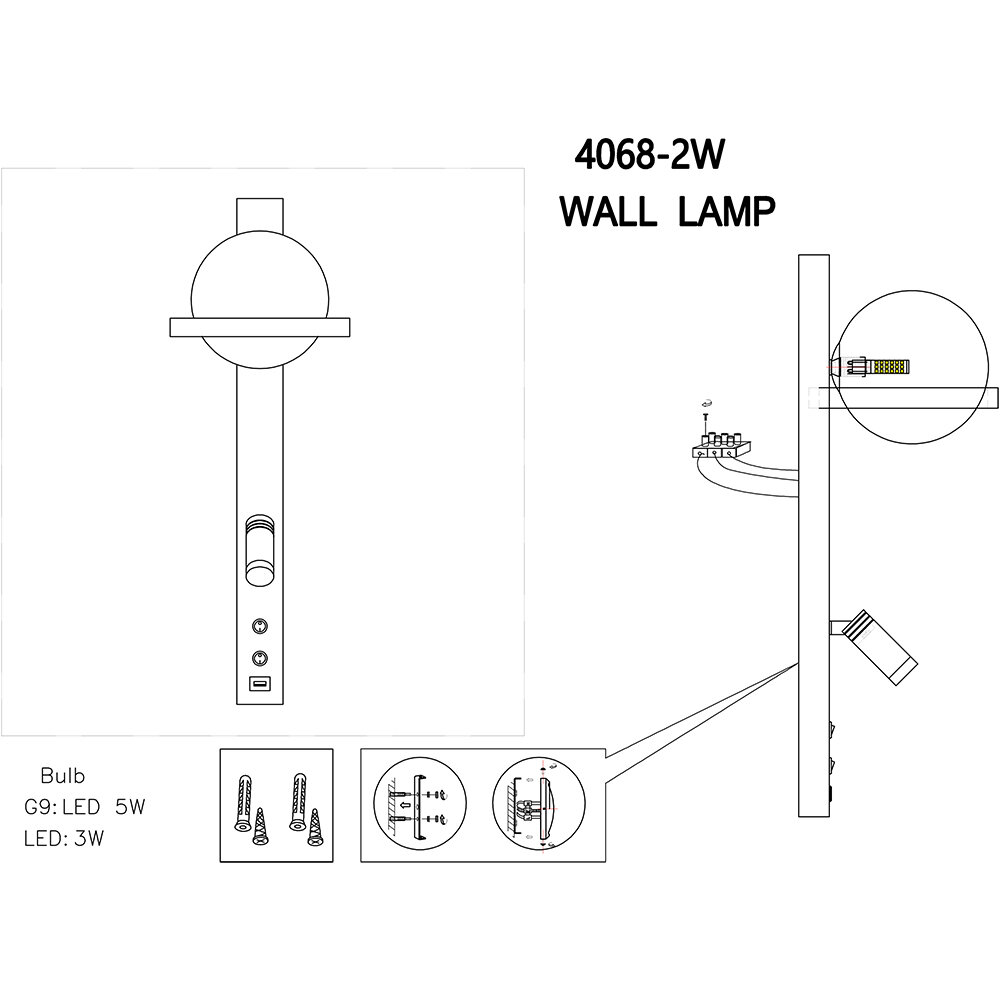 | Мощность лампы, W | 3 |