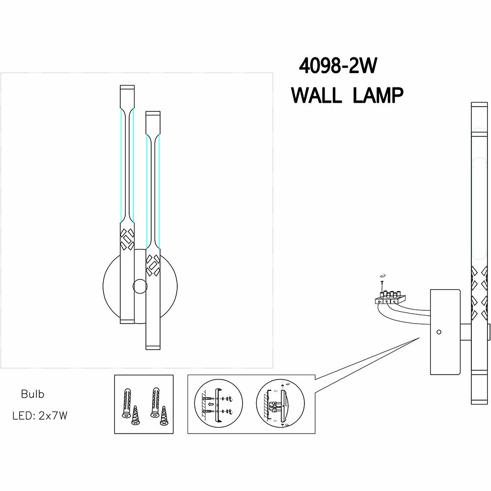 Бра оснащена светодиодными лампами с максимальной мощностью 14 Вт и цоколем LED. Это обеспечивает экономию электроэнергии и долгий срок службы светильника.