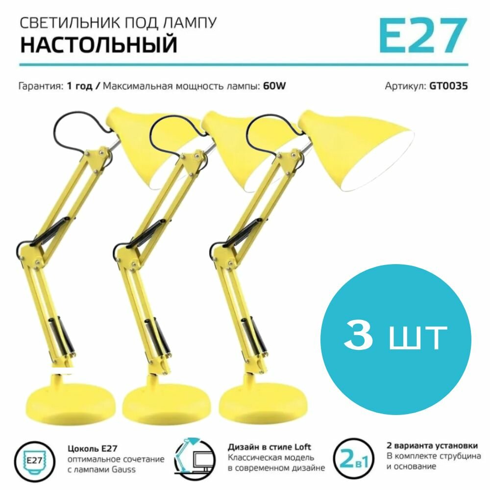 Светильник Gauss настольный на струбцине/основание E27 желтый 60Вт