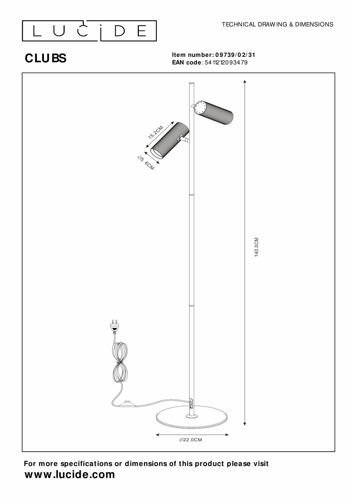 Торшер Lucide CLUBS 09739/02/31