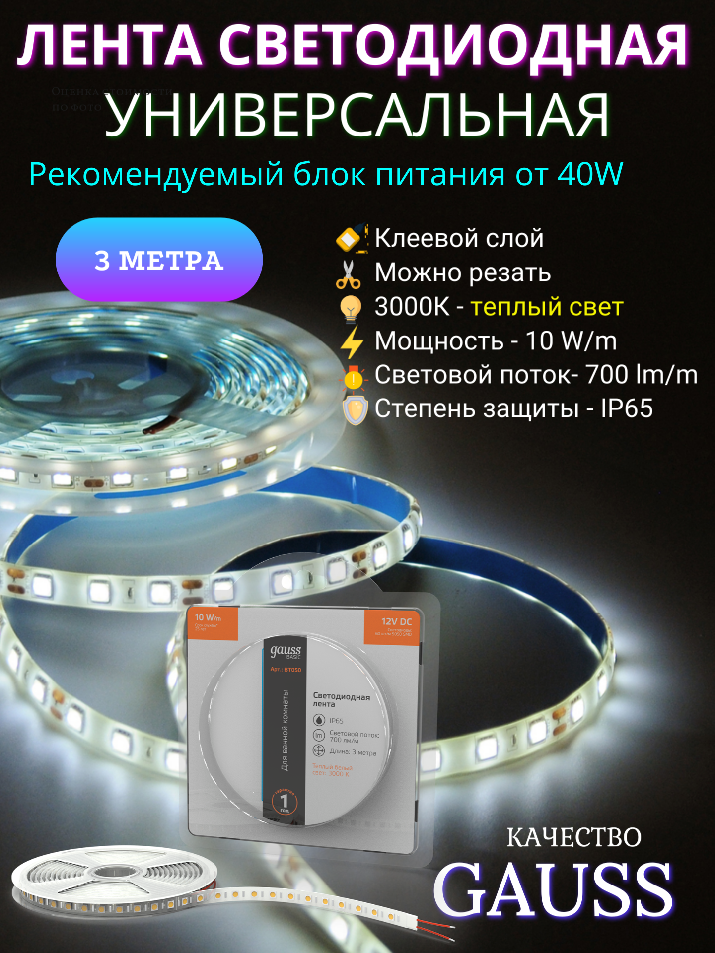 Ассортимент светодиодных лент Gauss способен решить ряд задач связанных как с декоративным освещением помещений, так и с экстерьерной подсветкой. Основой для ленты служит первичный силикон, без дополнительных примесей, что существенно увеличивает срок службы и помогает сохранить первоначальный вид на протяжении всего срока эксплуатации. Вариативный диапазон размещения количества светодиодов на метр позволяет использовать ленту для акцентной подсветки и для основного освещения. Высокий коэффициент CRI (> 80 ) обеспечит естественную цветопередачу. Профессиональные решения с высоким показателем светоотдачи лм/Вт.