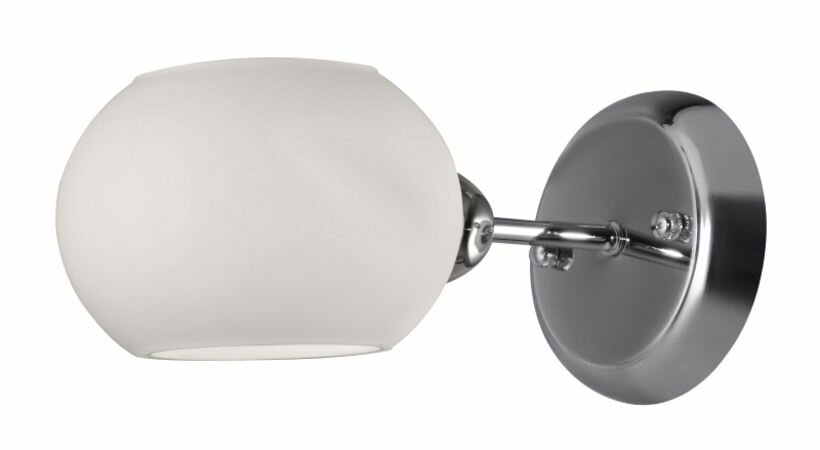 Бра Rivoli Doris Б0055649 бренда Rivoli из Италии коллекции Doris в стиле Модерн. Одна из зон рекомендованных к размещению (необязательно) В прихожую. Место расположения - На стену. Материал плафона/абажура - Стекло. Цвет плафона/абажура - Белый. Форма плафона - Шар. Направление абажуров/плафонов: В стороны. Количество плафонов/абажуров - 1. Материал арматуры - Металл. Цвет арматуры - Хром. Тип крепления: Монтажная пластина. Тип подключаемых ламп: Накаливания цоколя E14. Площадь освещения - 3. Мощность лампы, W: 40. Общая мощность, W: 40. Количество ламп - 1. Напряжение - 220. Степень защиты (IP): 20. Высота, мм - 120. Ширина, мм - 140. Длина, мм - 240Откройте для себя больше! В нашем полном каталоге вы найдете огромный выбор товаров на любой вкус и потребность. У нас вы найдете широкий ассортимент всех популярных брендов освещения, высокое качество продукции и отличный сервис. Зайти в наш магазин вы можете по логотипу или названию магазина «Сияйка»
