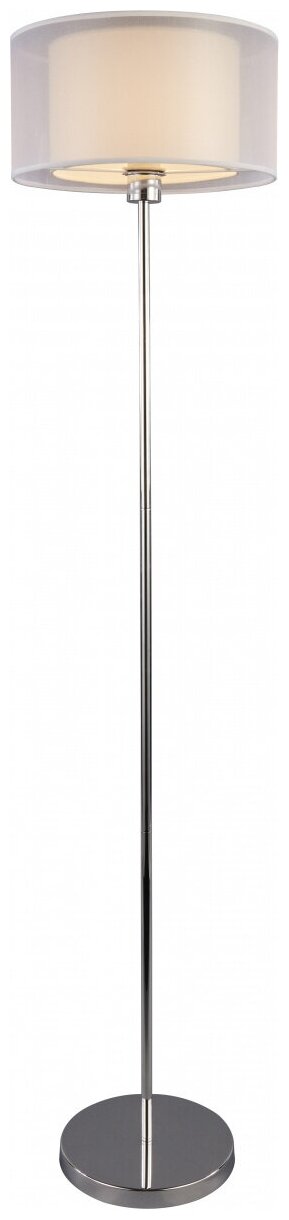 Корпус светильника изготовлен из металла. Арматура хромированного цвета — она устойчива к механическим повреждениям и коррозии. Плафон выполнен из ткани — он мягко рассеивает свет, создавая приятную атмосферу.