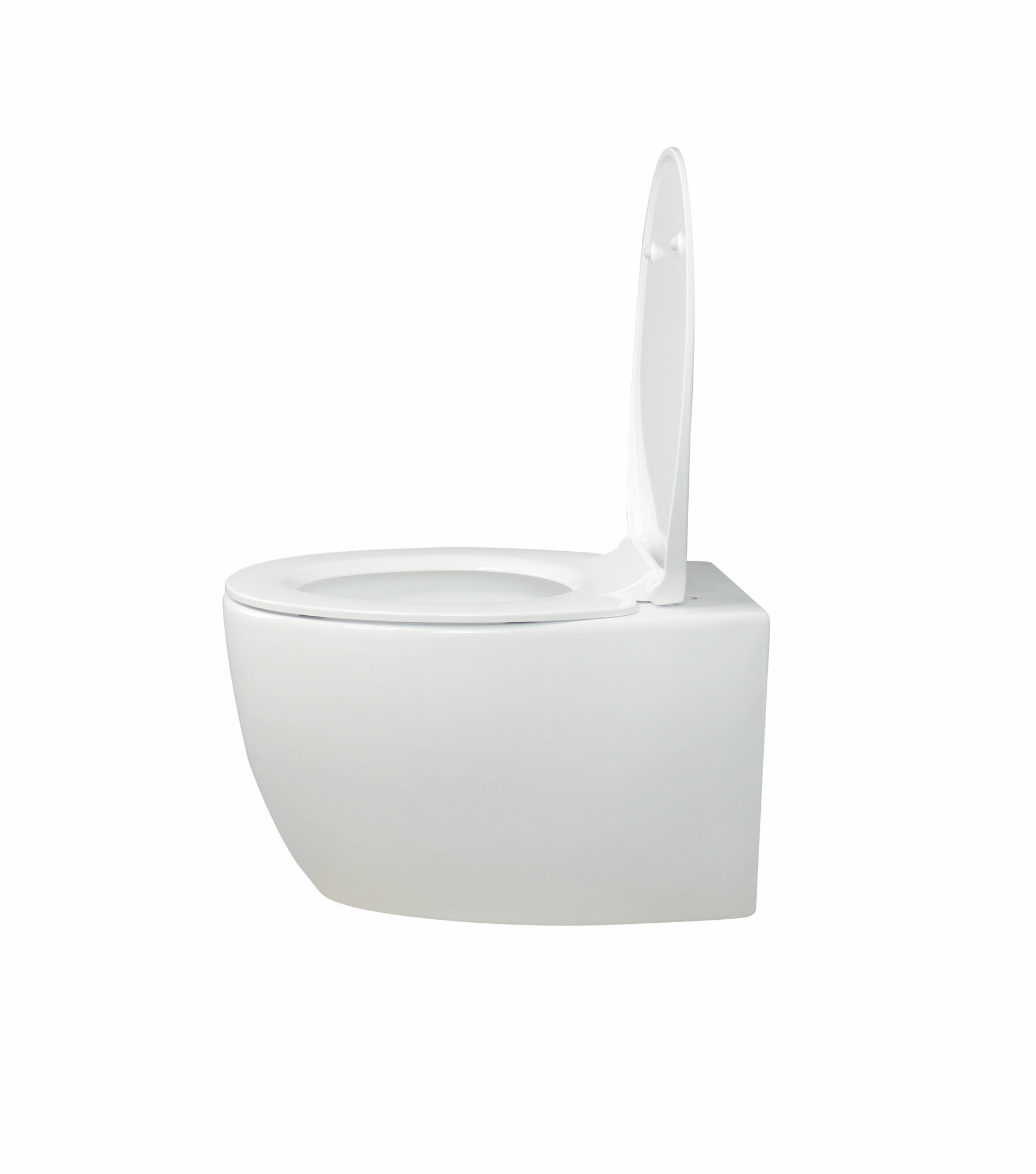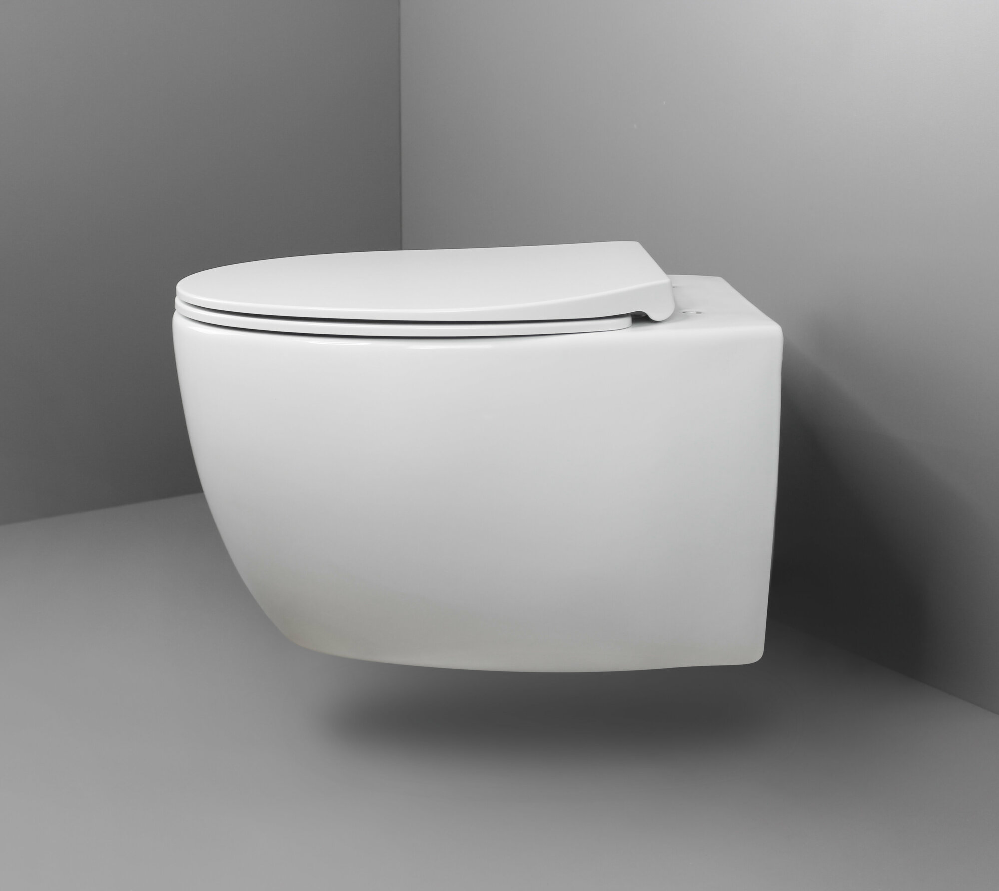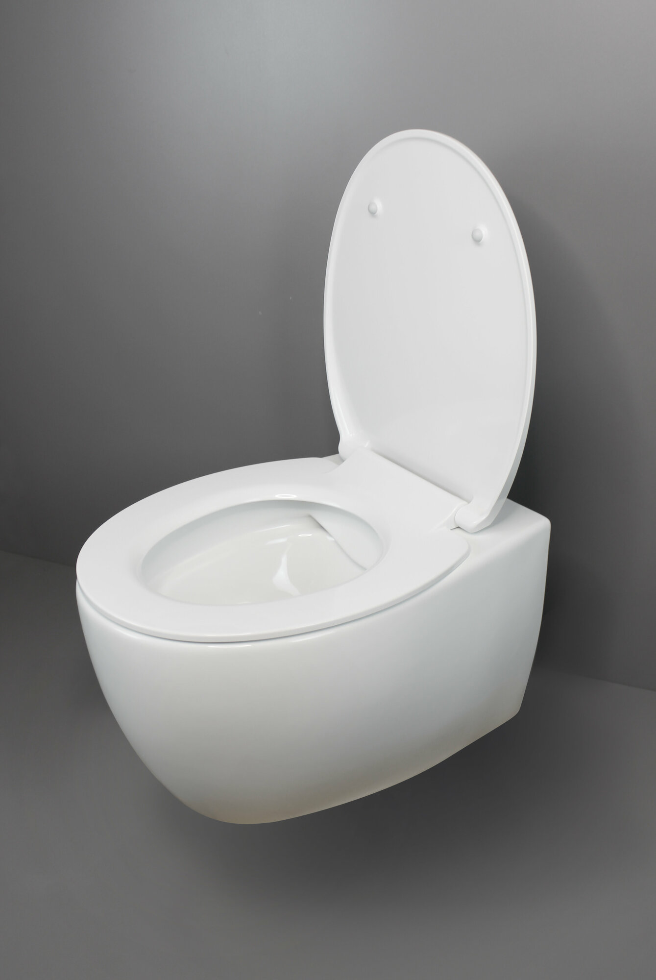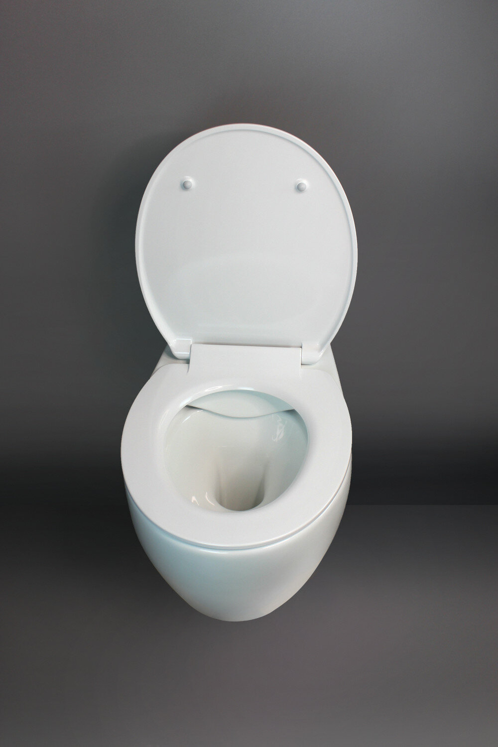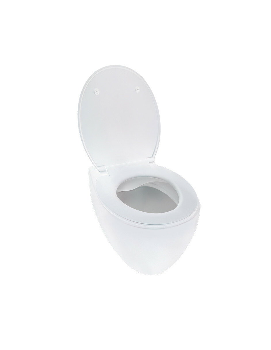 Подвесной безободковый унитаз с горизонтальным сливом. Дюропластовое быстросъемное тонкое сидение с функцией soft-close. Крепление в комплекте. Сантехнический фарфор.