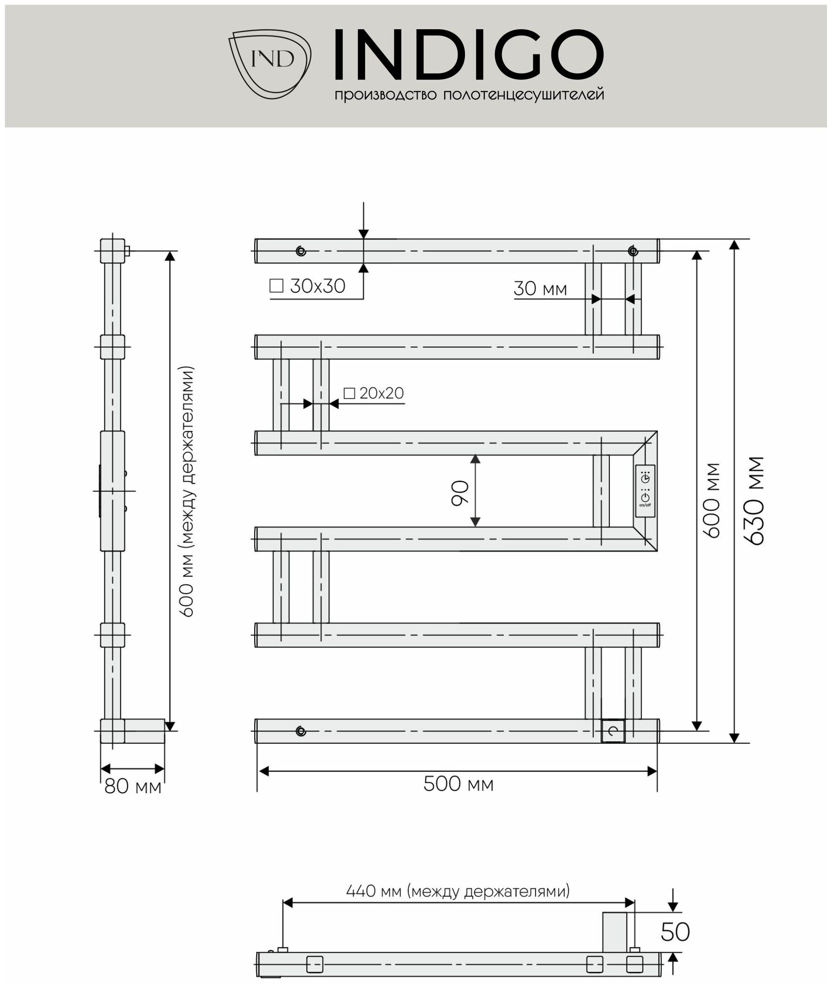 Полотенцесушитель электрический INDIGO Muza в размере 600х500 (ВхШ) выбирают за его технологичность и форму. Модель имеет терморегулятор нагрева, у которого три режима: 40, 45, 50 градусов и таймер на отключение через 2, 4, 6 часов. Универсальность изделия предусматривает подключение через прямой провод или скрытое подключение без покупки дополнительного переходника. Длина прямого провода 1,2 метра. Изделие окрашено порошковой краской по специальной технологии. Полотенцесушитель относится к энергоэффективным изделиям, потребляемая мощность в данном размере 128 Вт. Специальная технология нагревательного кабеля защищает полотенцесушитель от перегрева, что влияет на длительные сроки службы. В комплектации идут 3 телескопических держателя, комплект монтажа и гарантийный паспорт. Полотенцесушитель INDIGO Muza застрахован и имеет гарантию 3 года. Выбирая INDIGO вы получаете надежный продукт с гарантией качества от Российского производителя