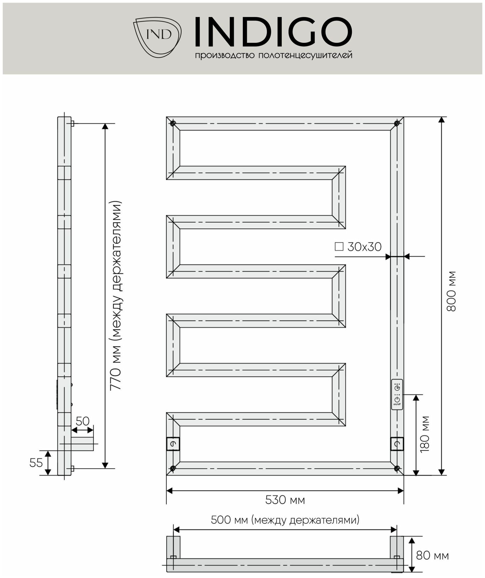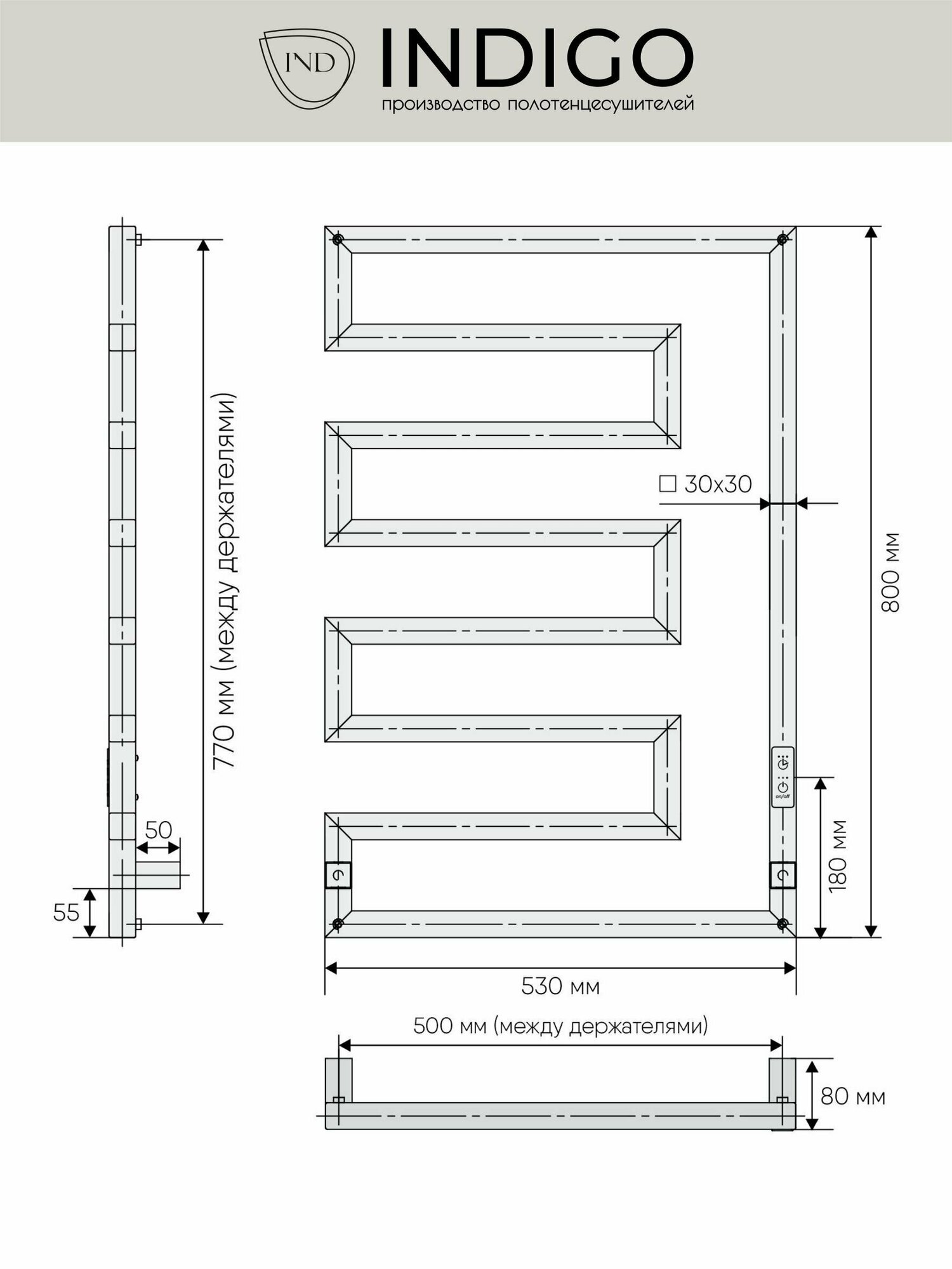 Полотенцесушитель электрический INDIGO Rodos в размере 800х500 (ВхШ) выбирают за его технологичность и дизайн-форму. Модель имеет терморегулятор нагрева, у которого три режима: 40, 45, 50 градусов и таймер на отключение через 2, 4, 6 часов. Универсальность изделия предусматривает подключение через прямой провод или скрытое подключение без покупки дополнительного переходника. Длина прямого провода 1,2 метра. Изделие окрашено порошковой краской по специальной технологии. Полотенцесушитель относится к энергоэффективным изделиям, потребляемая мощность в данном размере 152 Вт. Специальная технология нагревательного кабеля защищает полотенцесушитель от перегрева, что влияет на длительные сроки службы. В комплектации идут 4 телескопических держателя, комплект монтажа и гарантийный паспорт. Полотенцесушитель INDIGO Rodos застрахован и имеет гарантию 3 года. Выбирая INDIGO вы получаете надежный продукт с гарантией качества от Российского производителя