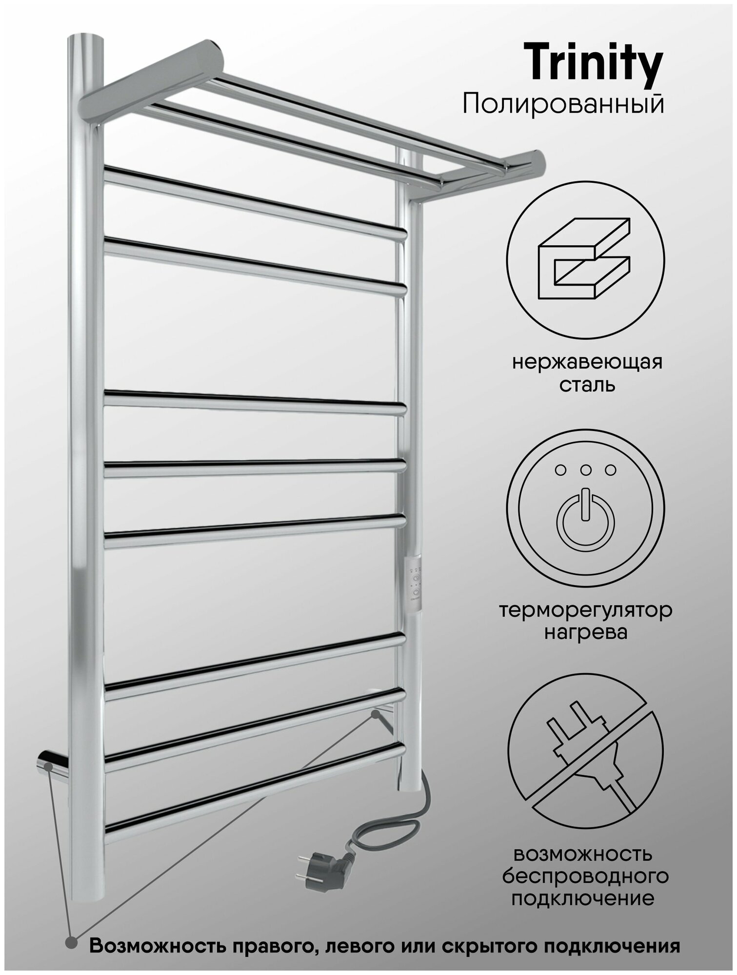 Полотенцесушитель электрический Indigo Line Trinity с полкой серебристый LСLTE80-50PRt (размер: 53X80 см)