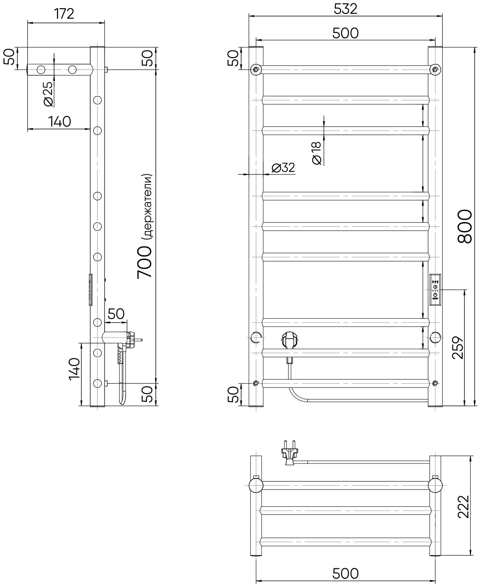 | ВКоробке | Полотенцесушитель - 1 шт. Терморегулятор - 1 шт. Комплект креплений - 1 шт. Электрический кабель - 1 шт. Инструкция - 1 шт. |
