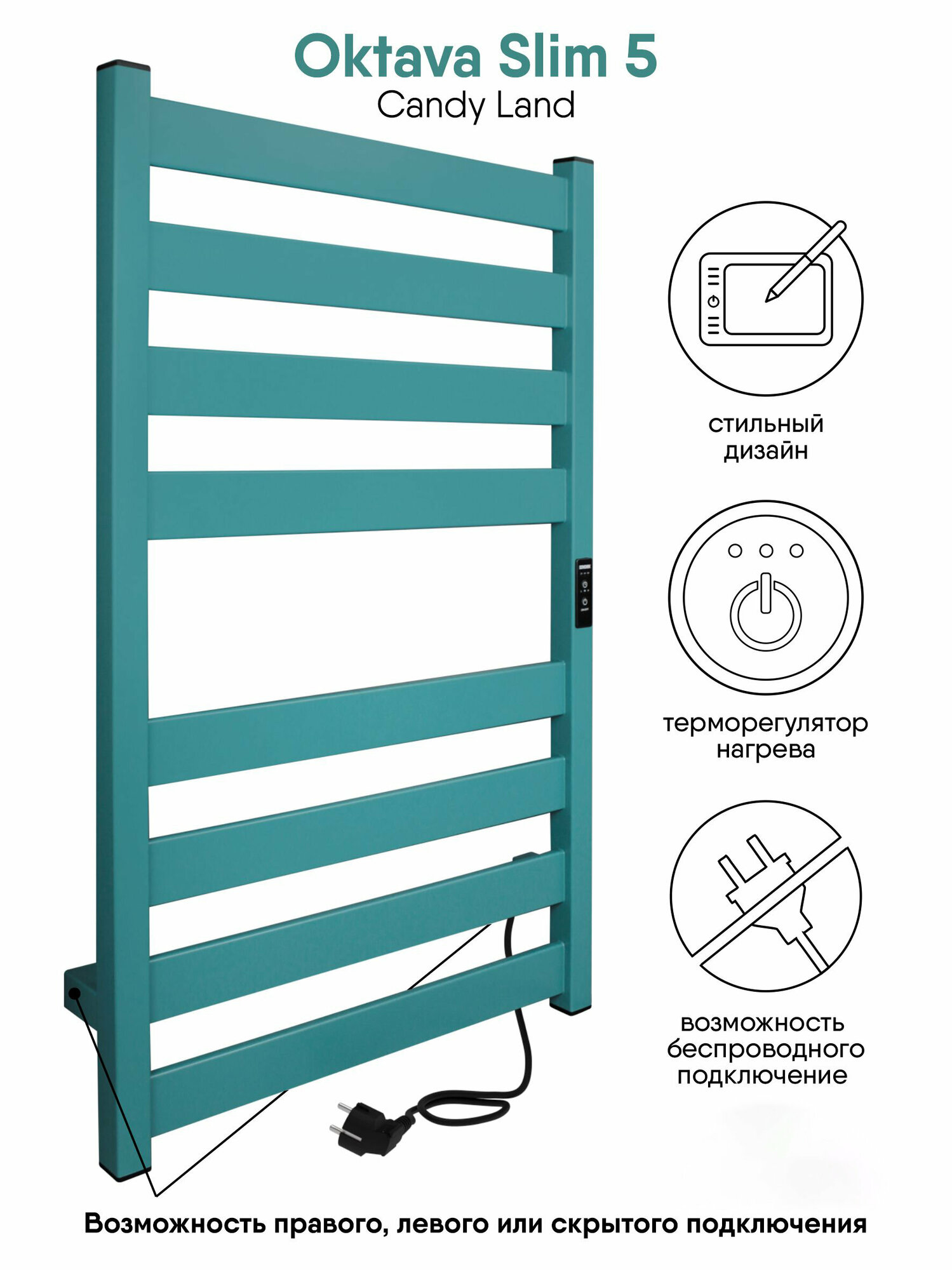Полотенцесушитель электрический Indigo Oktava Slim 5 бирюзовый LСLOKS5E80-50CLRt (размер: 53X80 см)