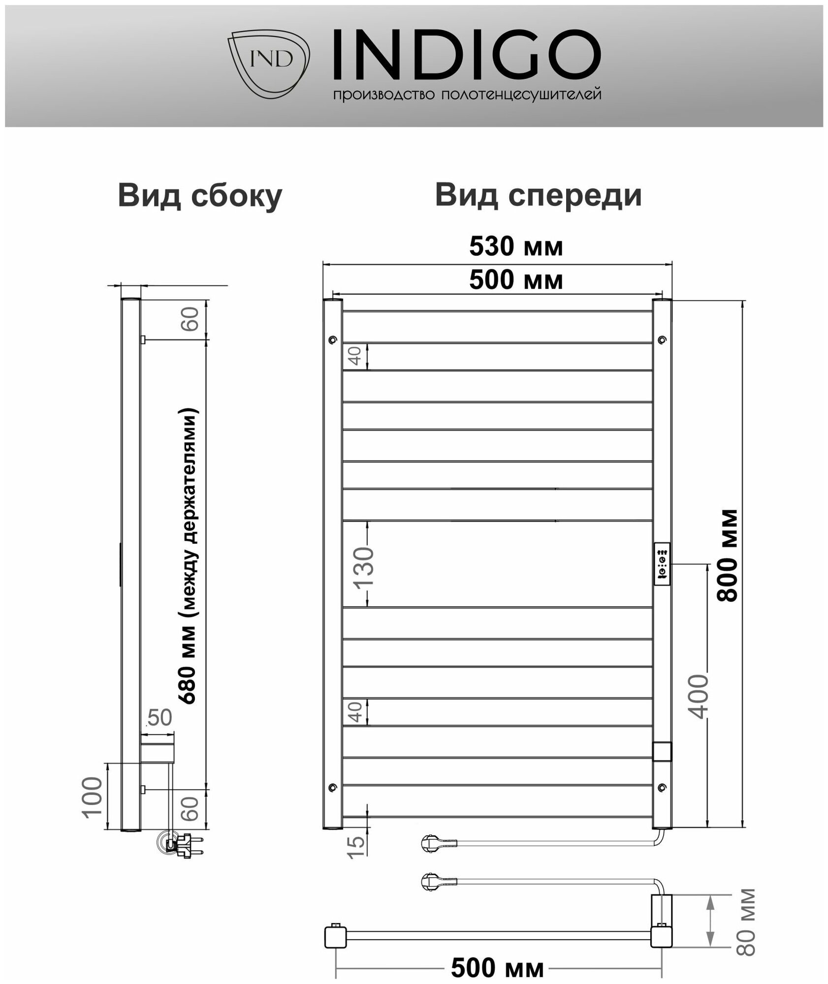 | ВКоробке | Полотенцесушитель - 1 шт. Терморегулятор - 1 шт. Комплект креплений - 1 шт. Электрический кабель - 1 шт. Инструкция - 1 шт. |