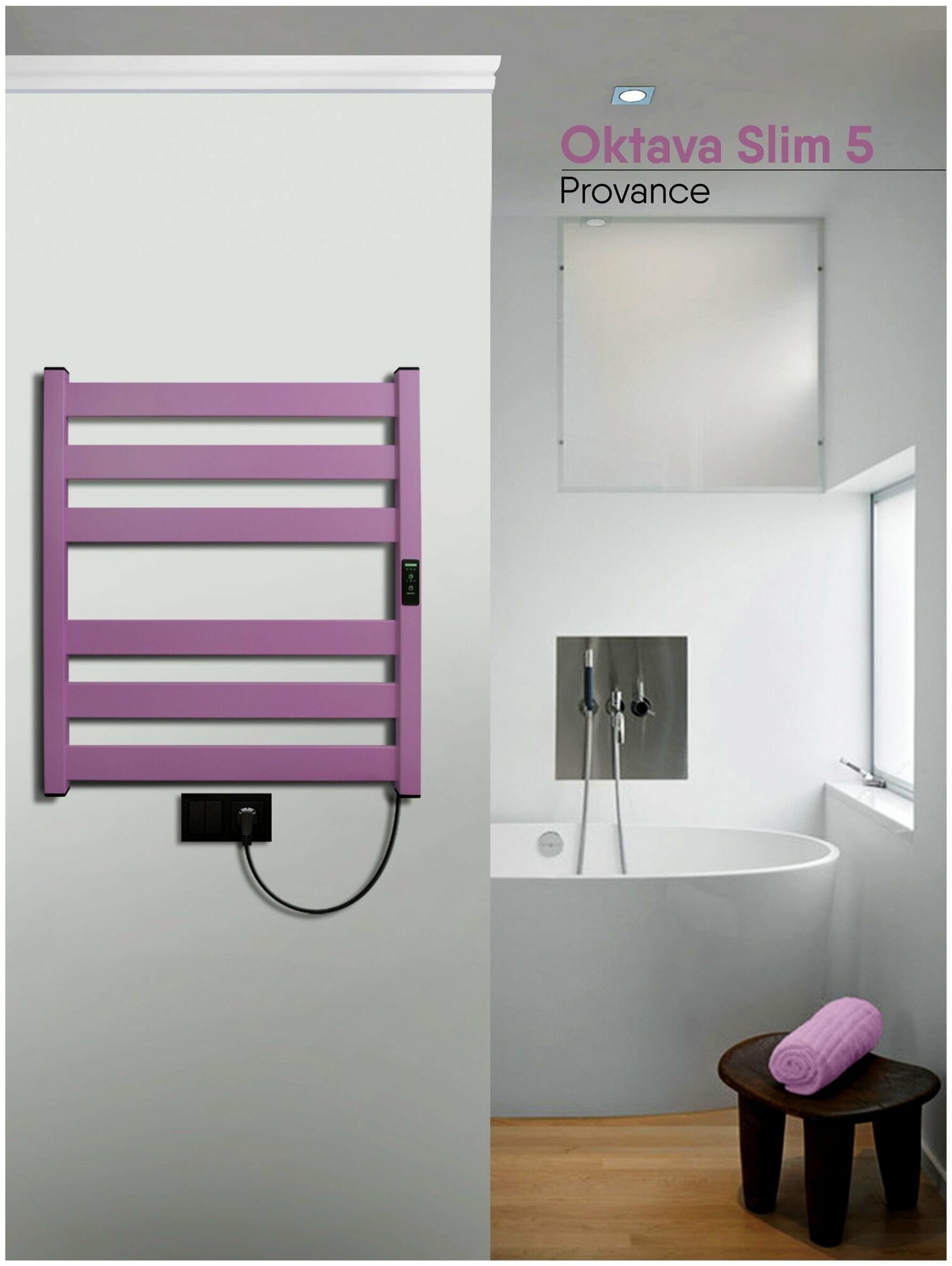 Полотенцесушитель электрический Indigo Oktava Slim 5 фиолетовый LСLOKS5E60-50PCRt (размер: 53X60 см)