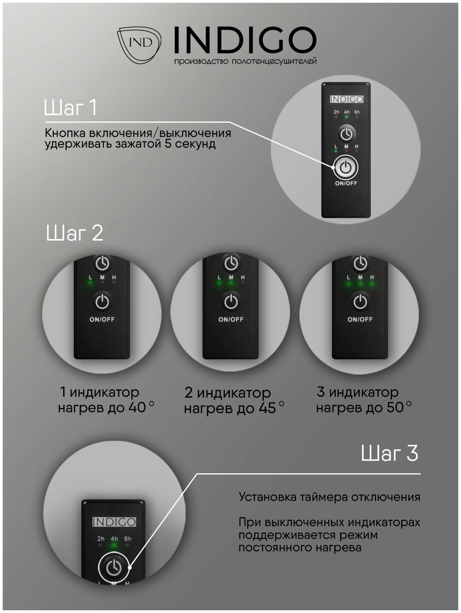 Полотенцесушитель электрический INDIGO Oktava Slim 5 в размере 600х500 (ВхШ) выбирают за его технологичность и универсальность. Модель имеет терморегулятор нагрева, у которого три режима: 40, 45, 50 градусов и таймер на отключение через 2, 4, 6 часов. Универсальность изделия предусматривает подключение через провод, который переставляется на нужную вам сторону или скрытое подключение без покупки дополнительного переходника. Длина провода 1,2 метра. Изделие окрашено порошковой краской по специальной технологии. Полотенцесушитель относится к энергоэффективным изделиям, потребляемая мощность в данном размере 70 Вт. Специальная технология нагревательного кабеля защищает полотенцесушитель от перегрева что влияет на длительные сроки службы. В комплектации идут 4 телескопических держателя, комплект монтажа и гарантийный паспорт. Полотенцесушитель INDIGO Oktava Slim 5 застрахован и имеет гарантию 3 года. Выбирая INDIGO вы получаете надежный продукт из нержавеющей стали с гарантией качества от Российского производителя