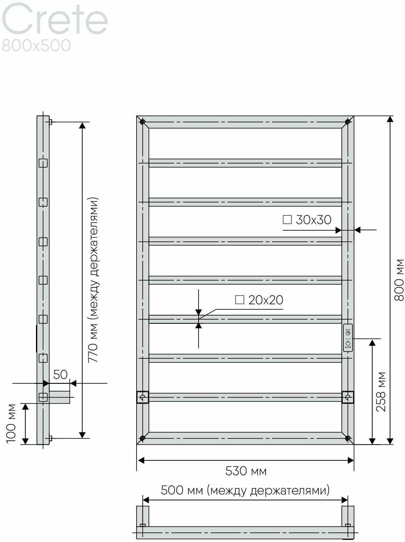 Полотенцесушитель электрический Indigo Crete черный муар DGC80-50BRRt (размер: 80x53 см)