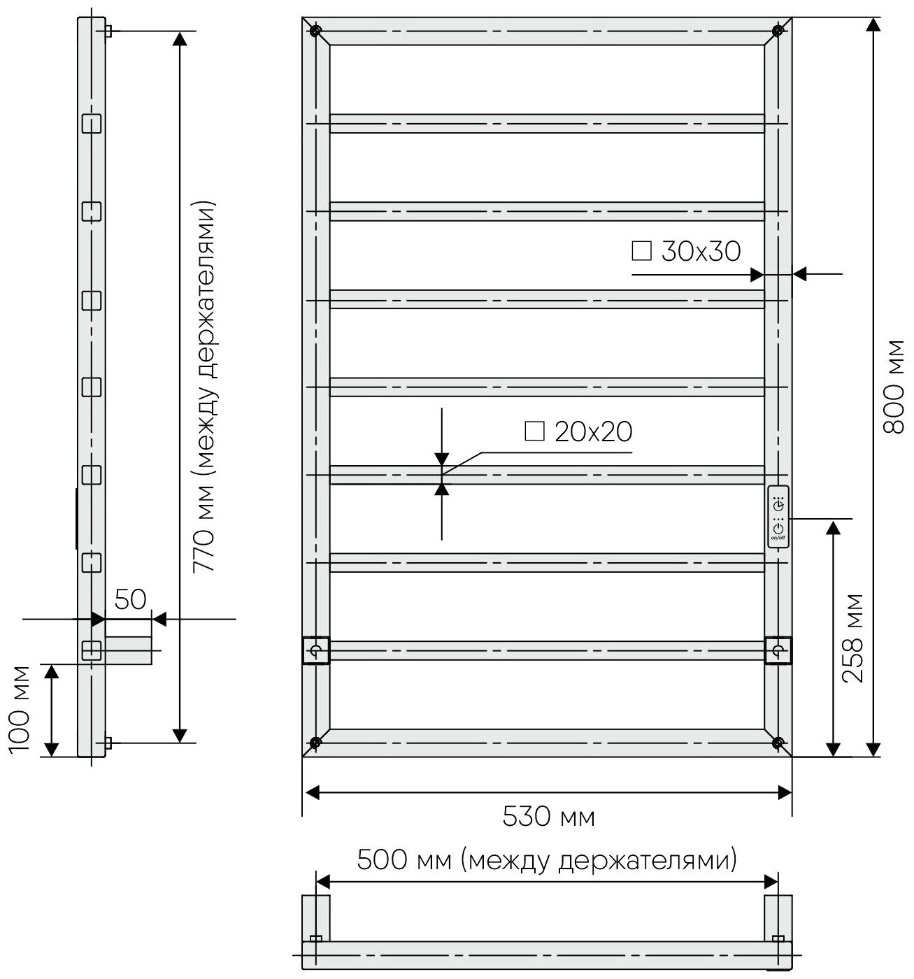 | ВКоробке | Полотенцесушитель - 1 шт. Терморегулятор - 1 шт. Комплект креплений - 1 шт. Электрический кабель - 1 шт. Инструкция - 1 шт. |